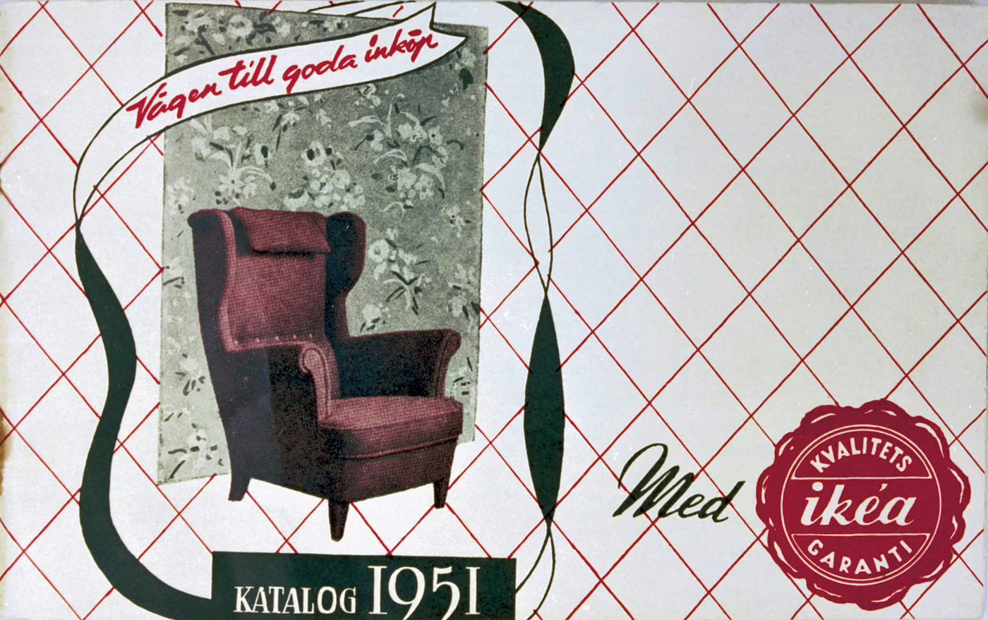 Chiếc logo đầu tiên của IKEA được tạo ra vào năm 1951. Nó có hình tròn và sử dụng màu đỏ làm màu nền chủ đạo cho phần chữ màu trắng. Ingvar Kamprad, cha đẻ của IKEA, vốn thích màu đỏ vì nó tượng trưng cho giá thành thấp. Sau đó logo IKEA đã trải qua vài cuộc đại tu và thiết kế hiện nay vẫn rất gần với chiếc logo năm 1967.