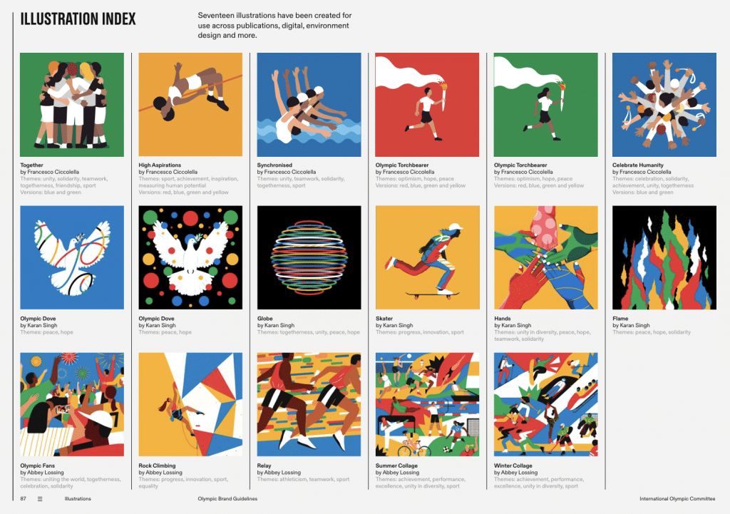 Bộ Olympic Brand Guidelines được chia sẻ gồm 132 trang và 12 mục vô cùng tỉ mỉ và chuyên nghiệp. Bộ tài liệu chi tiết từ Logo, màu sắc, typography, pictogram, infographic cho đến hướng dẫn về concept, photography và hình ảnh trên các phương tiện truyền thông.