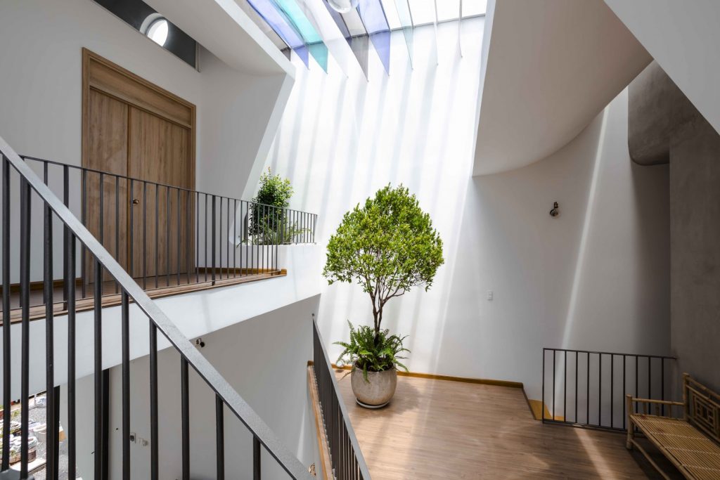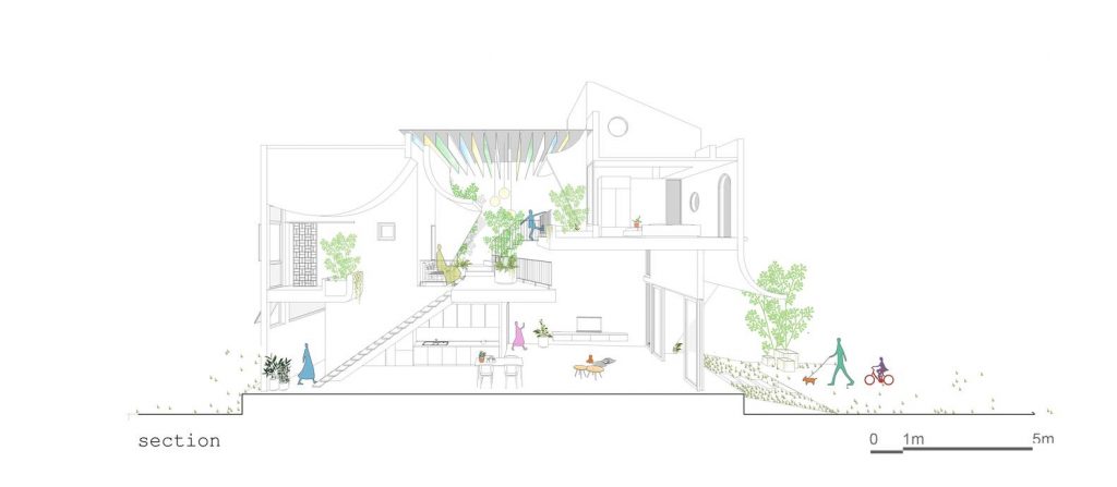 Mọi thành viên đều có thể quan sát và giao tiếp với nhau thông qua các “khoảng trống” trong nhà. Sự giao tiếp giữa con người với ánh sáng, gió và cây cỏ đóng vai trò như một sự cộng hưởng và tăng cường cảm xúc.