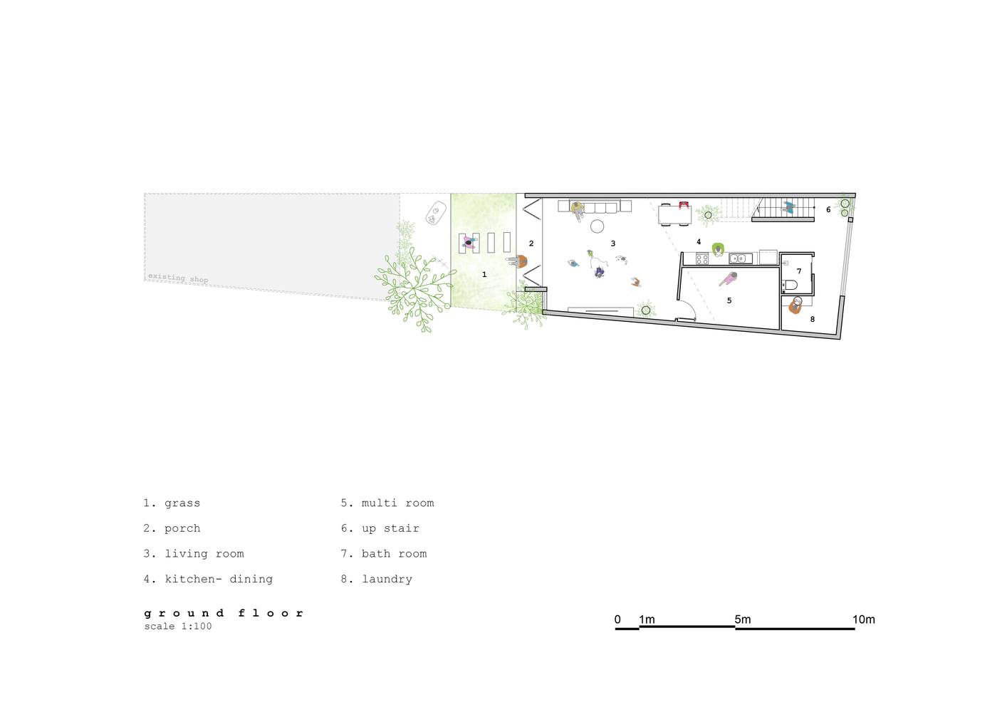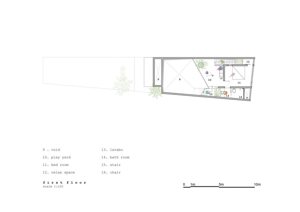Là không gian sống của một gia đình có 2 cô con gái nhỏ. Mục đích của không gian là kết nối hoạt động của các thành viên trong gia đình với nhau.