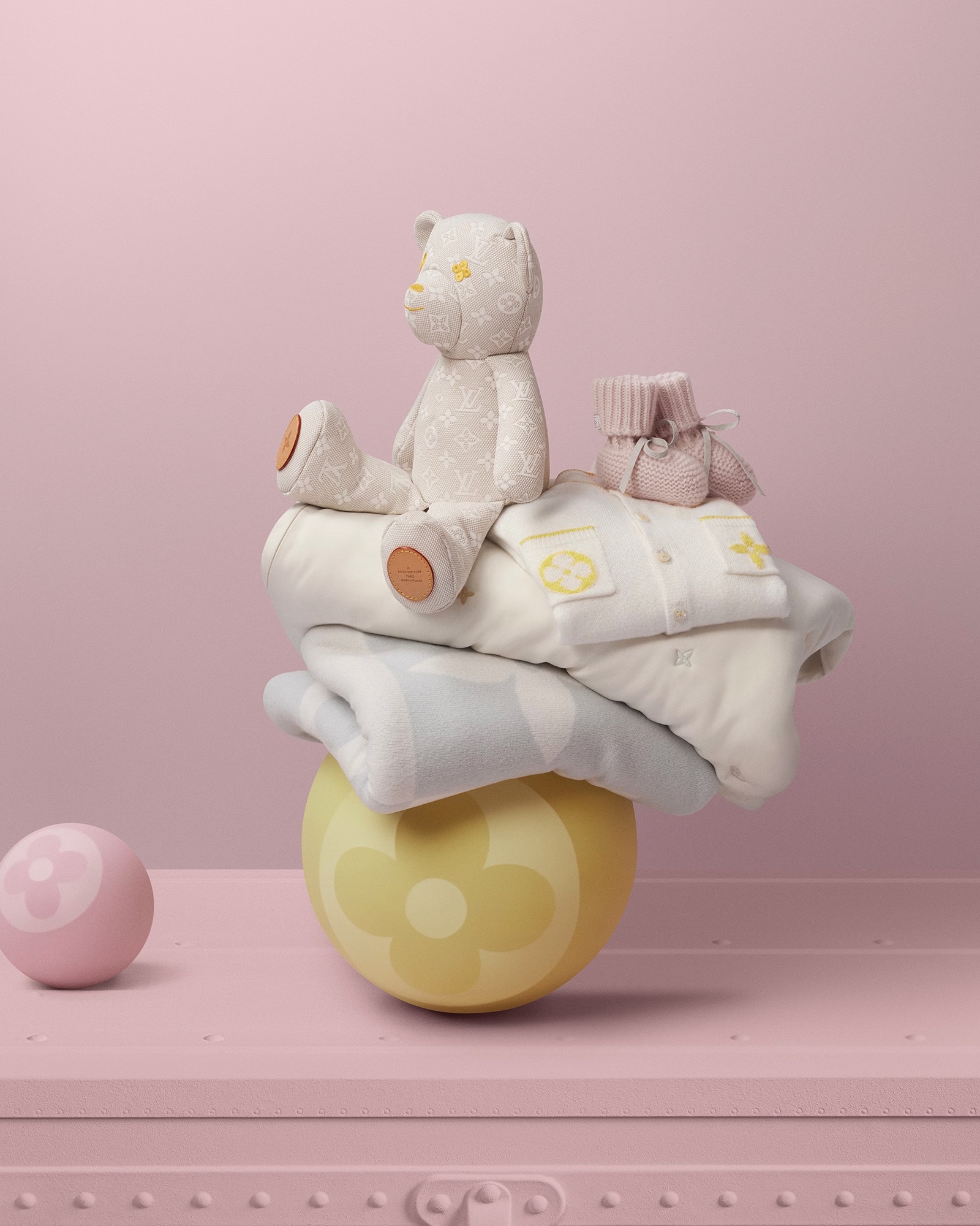Bộ sưu tập cũng bao gồm các phụ kiện như Gấu bông Louis đặc biệt, một chiếc cốc bạc, chăn dệt kim, vali trẻ em, lục lạc bạc và thậm chí cả một chiếc tủ quần áo trẻ em có hình dạng giống như những chiếc rương nổi tiếng của nhà mốt ở phiên bản dành cho người lớn.