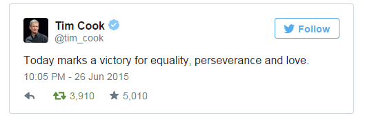 “Ngày hôm nay là cột mốc đánh dấu chiến thắng của sự công bằng, sự kiên trì và tình yêu.” – Tim Cook