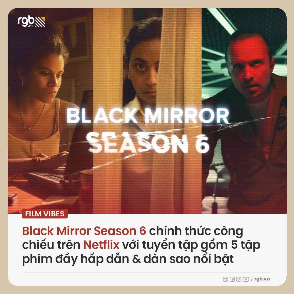 Sau một vài năm gián đoạn kể từ phần 5 được công chiếu vào năm 2019, Black Mirror đã trở lại với phần 6 và được chính thức công chiếu trên Netflix vào 15/6 vừa qua. Black Mirror mùa 6 bao gồm 5 tập phim: “Joan Is Awful,” “Loch Henry,” “Beyond the Sea,” “Mazey Day,” và “Demon 79”. Mùa 6 có sự góp mặt của các diễn viên lớn như Aaron Paul, Kate Mara , và Salma Hayek… Đọc tiếp