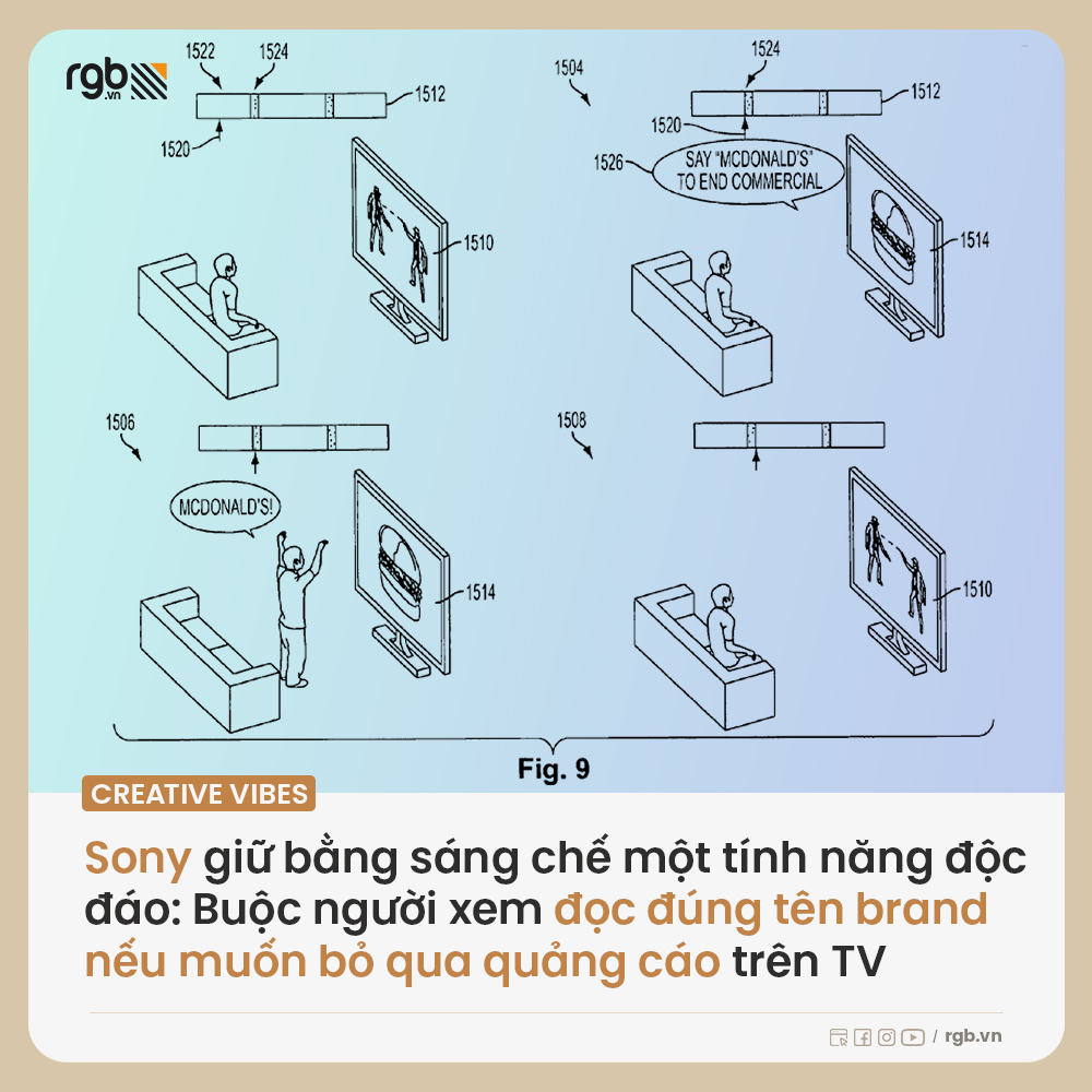 Sony hiện đang sở hữu một bằng sáng chế cho phép người xem bỏ qua quảng cáo trên TV bằng cách ra lệnh trên màn hình. Đơn xin cấp bằng sáng chế mô tả một hệ thống sử dụng tính năng nhận dạng giọng nói để phát hiện các từ khóa hoặc cụm từ cụ thể, chẳng hạn như “bỏ qua” hoặc “tiếp theo” và tự động tua nhanh qua đoạn quảng cáo.Công nghệ này cũng có thể phát hiện giọng nói của người xem từ xa, cho phép họ bỏ qua quảng cáo ngay cả khi họ không ở ngay trước TV.