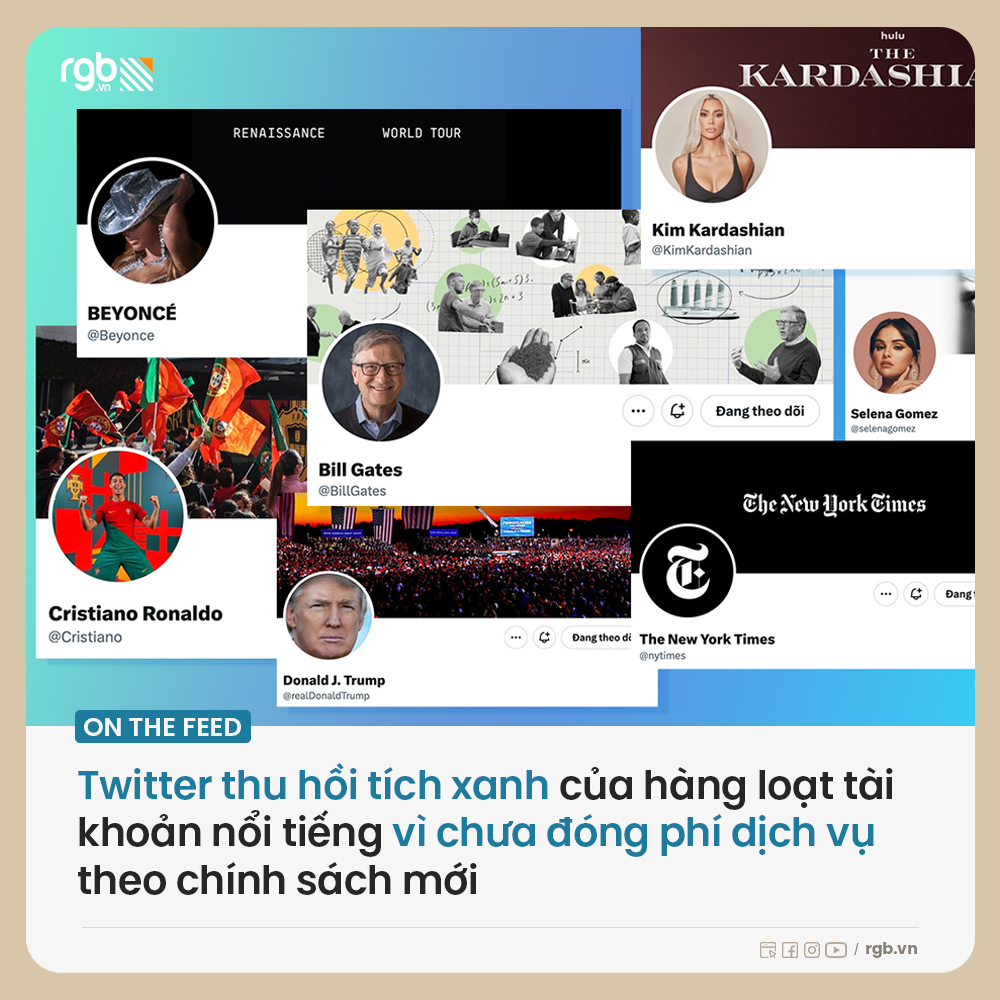 Donald Trump, Bill Gates hay Cristiano Ronaldo, Beyoncé,… nằm trong số hàng nghìn tài khoản bị thu hồi tick xanh trên Twitter do chưa đăng ký dịch vụ theo chính sách mới.