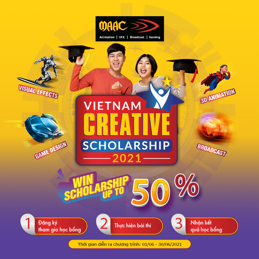 MAAC GLOBAL TRAO TẶNG HỌC BỔNG TÀI NĂNG LÊN ĐẾN 50% (TƯƠNG ĐƯƠNG 67 TRIỆU VNĐ) CHO TOÀN BỘ CÁC CHƯƠNG TRÌNH ĐÀO TẠO 24 THÁNG GIA NHẬP NGÀNH HOẠT HÌNH 3D (3D ANIMATION), KỸ XẢO ĐIỆN ẢNH (VFX) VÀ THIẾT KẾ GAME (GAME DESIGN)