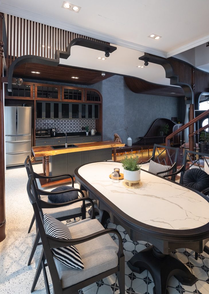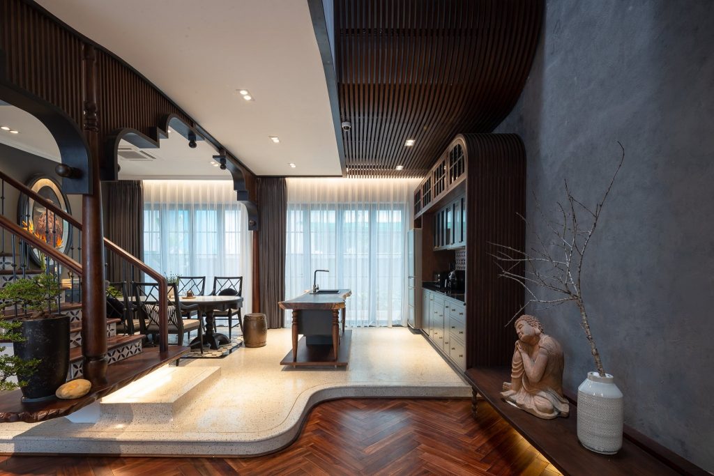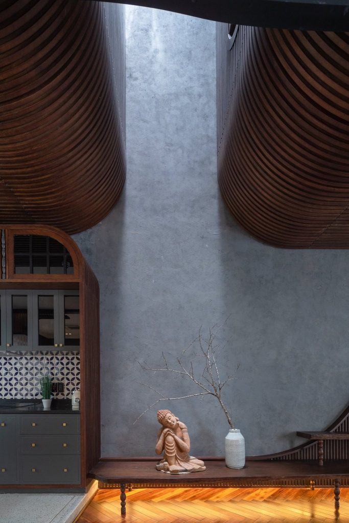 Chiếc bếp xinh xắn cùng chiếc bàn ăn mang dáng dấp hoài cổ. Những phiến đá Marble trắng trẻo trên nền gạch hoa đậm chất Indochine. Hay góc thư giãn với bức tượng Phật ngồi hoan hỉ bằng đất nung đợi chờ từng vệt nắng chiều mỗi ngày đi qua trên khoảng thông tầng. Tất cả chúng đều được vẽ nên bằng tất cả tâm huyết của người thiết kế cùng hy vọng của gia chủ. Tuy nhiên, hành trình xây dựng thực tế cho công trình lại lắm gian nan.