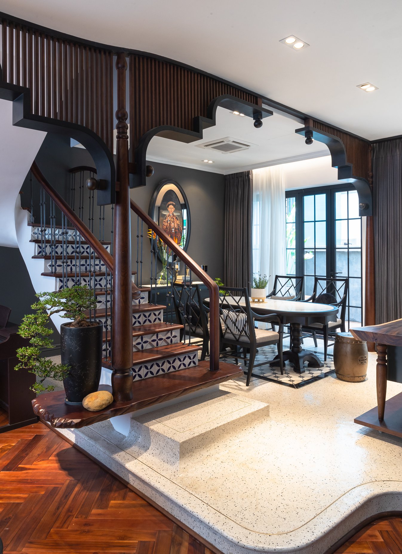 Chiếc bếp xinh xắn cùng chiếc bàn ăn mang dáng dấp hoài cổ. Những phiến đá Marble trắng trẻo trên nền gạch hoa đậm chất Indochine. Hay góc thư giãn với bức tượng Phật ngồi hoan hỉ bằng đất nung đợi chờ từng vệt nắng chiều mỗi ngày đi qua trên khoảng thông tầng. Tất cả chúng đều được vẽ nên bằng tất cả tâm huyết của người thiết kế cùng hy vọng của gia chủ. Tuy nhiên, hành trình xây dựng thực tế cho công trình lại lắm gian nan.