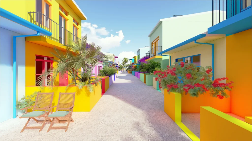 Các hình ảnh render cho thấy một thành phố đầy màu sắc phản ánh kiến trúc truyền thống của Maldives. Để có được các chi tiết phù hợp, Dutch Docklands đã làm việc chặt chẽ với chính quyền địa phương và tuyển Waterstudio, một công ty kiến trúc và quy hoạch đô thị, để lên thiết kế ý tưởng.