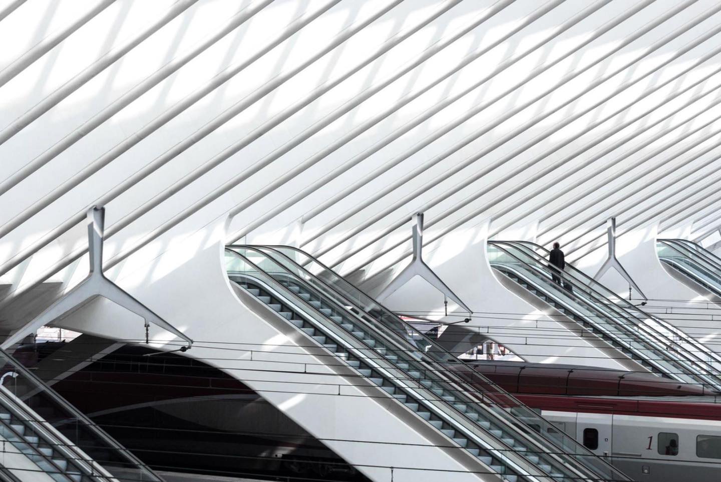 Đài tưởng niệm La Grande Arche de la Défense ở Paris, Pháp. Hình ảnh: Alberto Mateo. Bảo tàng Thế kỷ 21 về Nghệ thuật Đương Đại ở Nhật Bản. Hình ảnh: Ari Beser. Nhà ga Liège-Guillemins ở Bỉ. Thiết kế Santiago Calatrava. Hình ảnh: Mitchell Van Eilk Tòa nhà Rue de Rivoli ở Paris, Pháp. Hình ảnh: Martina Biccheri. Thang cuốn ảo diệu của trung tâm thương mại Nu Sentral ở Kuala Lumpur, Malaysia. Hình ảnh: Raymond Tang. Thư viện thành phố Stuttgart ở Đức. Hình ảnh: Katica Kapulica.
