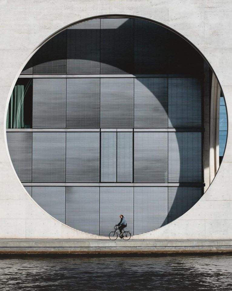 Hassan II Mosque, một trong những ngôi đền thờ Hồi giáo lớn nhất thế giới ở Casablanca, Marocco. Hình ảnh: Shevaun Williams. Một người chạy xe đạp ngang qua tòa nhà German Chancellery ở Berlin, Đức. Hình ảnh: Jonas Nordberg.