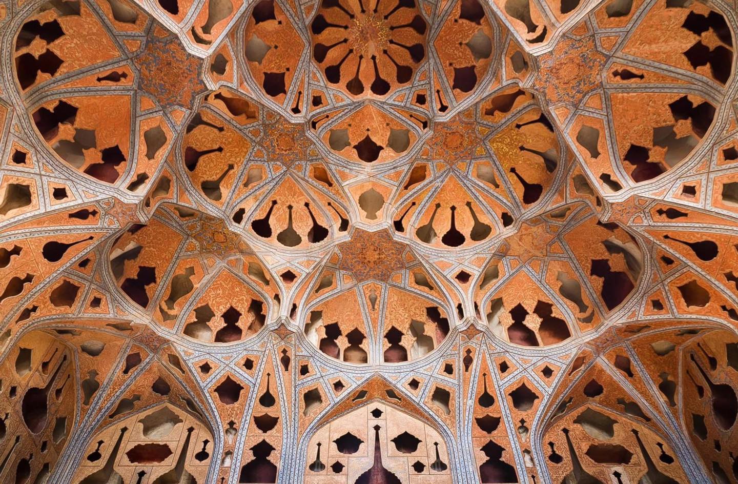 Trần tòa nhà Galleria Vittorio Emanuele II, một trong những trung tâm mua sắm lâu đời nhất thế giới ở Milan, Ý. Hình ảnh: Dave Kessel. Khán phòng hòa nhạc trong cung điện Ali Qapu ở Iran. Hình ảnh: Hamidreza Bagheri. Khu triển lãm Messeplatz ở Basel, Thụy Sỹ. Hình ảnh: Erberto Zani. Đại học Marmara ở Istanbul, Thổ Nhĩ Kỳ. Hình ảnh: Corneliu Cazacu