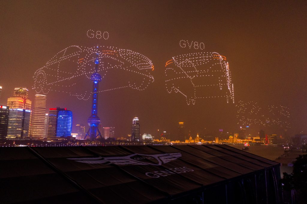Genesis – thương hiệu xe sang của Hyundai vừa dùng 3.281 chiếc drone để xếp hình logo của hãng trên bầu trời Thượng Hải hôm 2/4 để đánh dấu sự xuất hiện của thương hiệu này tại Trung Quốc. Màn “xếp hình” này cũng lập kỷ lục Guinness về “số lượng thiết bị bay không người lái trên không nhiều nhất”, theo thông cáo báo chí của Genesis.