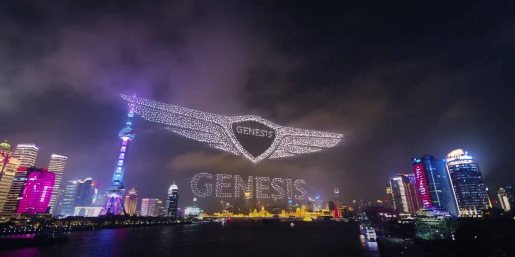 Genesis – thương hiệu xe sang của Hyundai vừa dùng 3.281 chiếc drone để xếp hình logo của hãng trên bầu trời Thượng Hải hôm 2/4 để đánh dấu sự xuất hiện của thương hiệu này tại Trung Quốc. Màn “xếp hình” này cũng lập kỷ lục Guinness về “số lượng thiết bị bay không người lái trên không nhiều nhất”, theo thông cáo báo chí của Genesis.