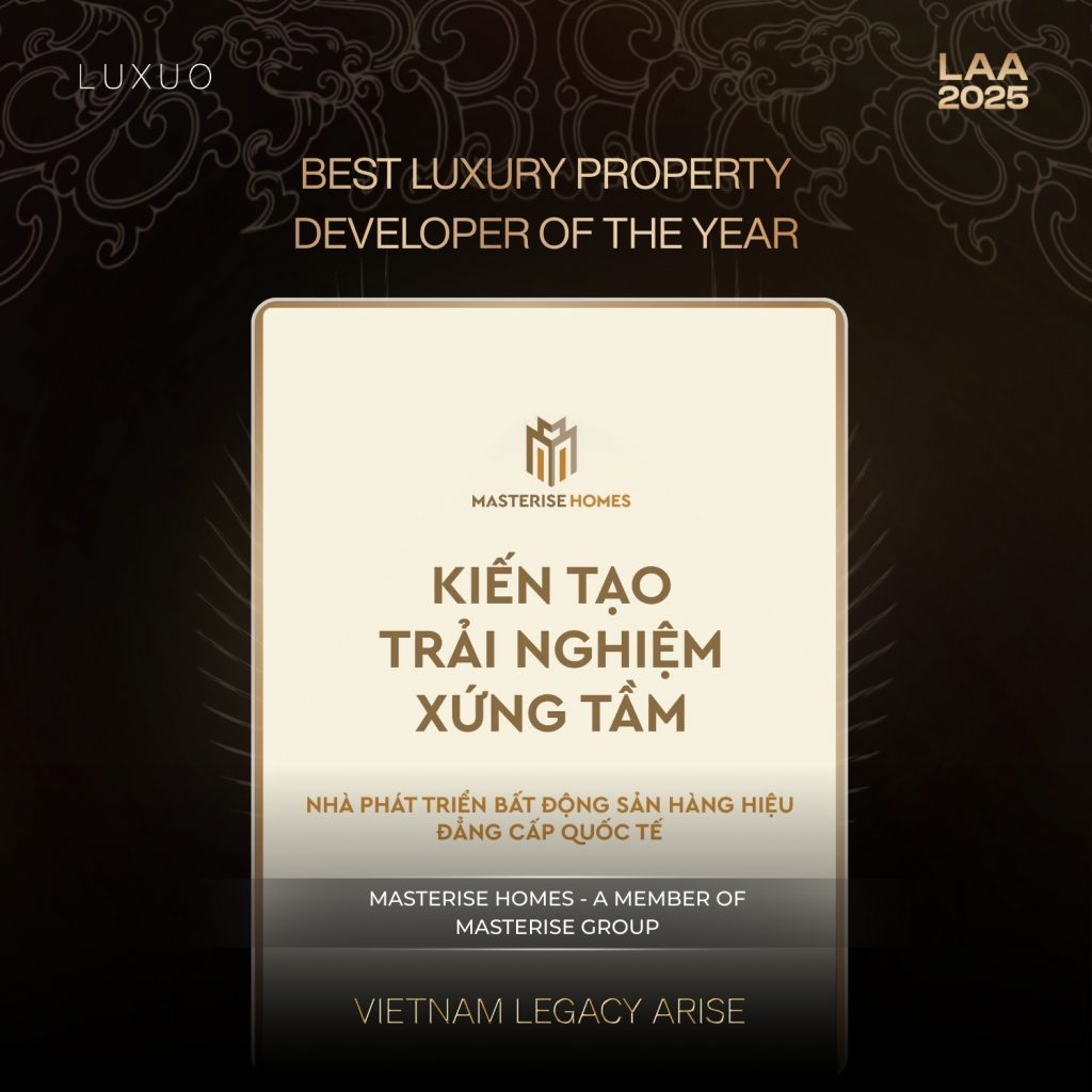 Những giải thưởng tại LUXUO Asia Awards 2025 vì thế là sự ghi nhận cho vai trò tiên phong của Masterise Homes – người đi trước trong tư duy, định hình chuẩn mực và dẫn dắt phân khúc bất động sản cao cấp tại Việt Nam.