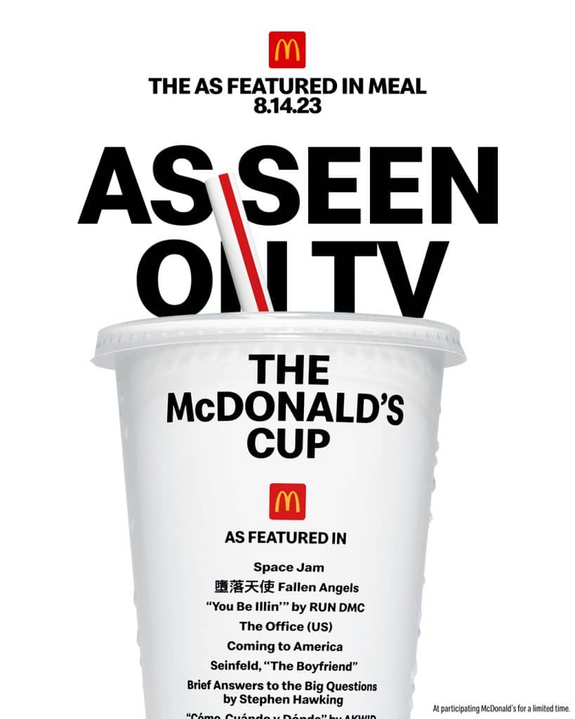Có tên ‘As Featured In Meal’, đây là bộ sưu tập các món ăn biểu tượng của McDonald’s đã từng xuất hiện trong các tác phẩm văn hoá đại chúng như phim ảnh và truyền hình. Bắt đầu từ ngày 14 tháng 8, thực đơn này sẽ có mặt tại hơn 100 quốc gia trên toàn cầu, mang đến những trải nghiệm sản phẩm độc quyền cho người hâm mộ.