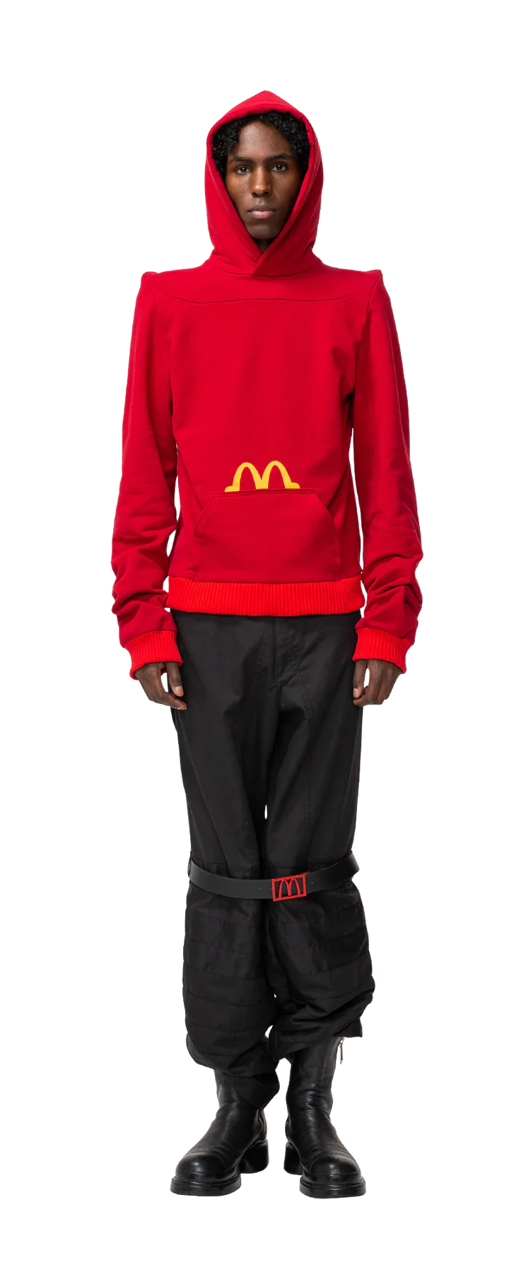 Cụ thể, những chiếc quần và áo sơ mi đồng phục tiêu chuẩn đã được biến thành những chiếc váy bồng bềnh, áo hoodie trơn và váy ngắn nhỏ, cùng những món đồ được xử lý khéo léo khác. Logo đỏ vàng đầy tính biểu tượng của McDonald’s cũng được sử dụng xuyên suốt trên các phụ kiện.