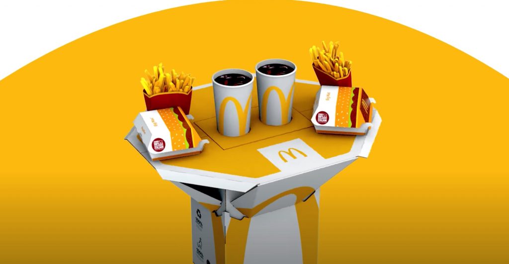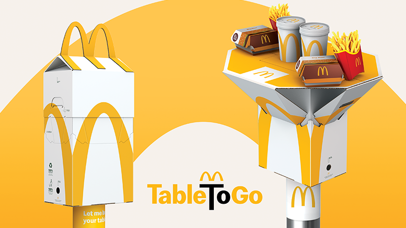 TableToGo là một “chiếc bàn ăn di động” phiên bản giới hạn bằng giấy có thể tái chế, được cung cấp cho du khách đã đặt bữa ăn qua ứng dụng McDonald’s. TableToGo có thể được dễ dàng gắn vào những cây cột đường trên khắp thành phố và biến thành chiếc bàn ăn siêu gọn nhẹ dành cho hai người. Giải pháp ăn uống sáng tạo và thiết thực này nhằm mục đích tạo ra một cửa hàng McDonald’s ngoài trời lớn nhất từ trước đến nay, đáp ứng nhu cầu ăn uống tự do và thoải mái tức thì của người tiêu dùng.