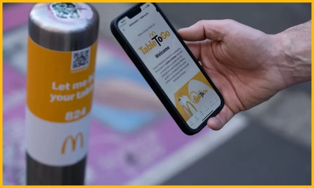 Trải nghiệm đặt hàng trên thiết bị di động cho TableToGo cũng được thực hiện liền mạch nhất có thể, với các mã QR được đặt trên các cây cột khác nhau trong khắp thành phố Milan. Mỗi mã được trang bị số cột riêng và điều hướng mọi người đến ứng dụng McDonald’s, nơi các đơn đặt hàng được xử lý và giao theo cách tương tự như đặt hàng tại một nhà hàng.
