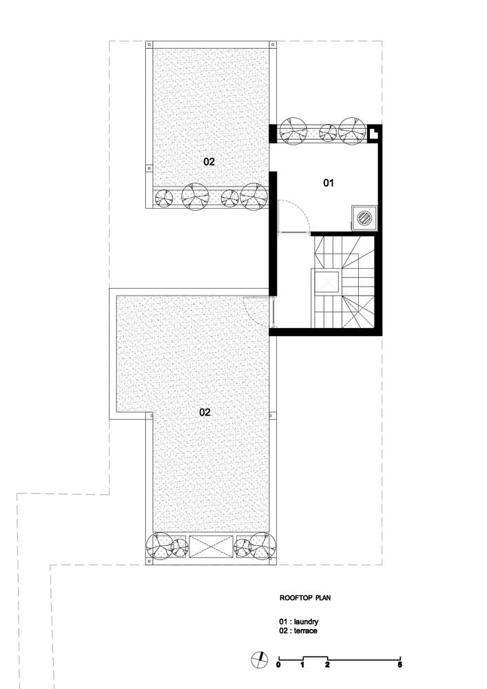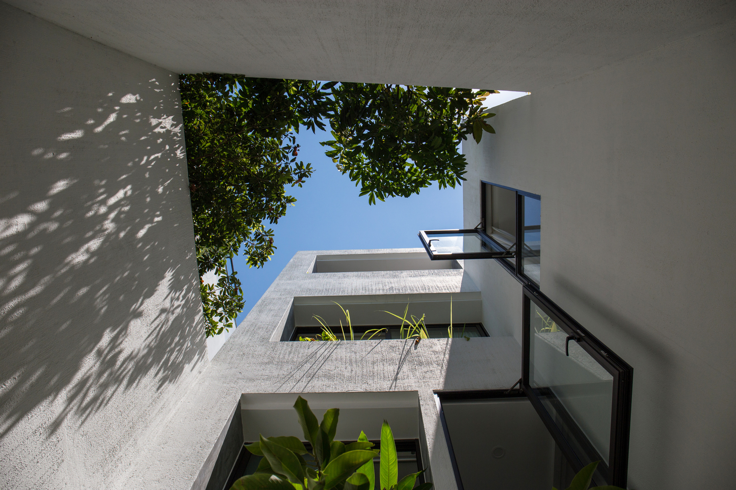 Lấy cảm hứng từ ngôi nhà sân vườn truyền thống, trong dự án này, các không gian và thể tích được cấu hình lại để xếp chồng lên nhau theo chiều dọc trong ba khối và sau đó bù đắp theo chiều ngang để tạo ra những khoảng trống cho không gian mở giữa các khối không gian kín.