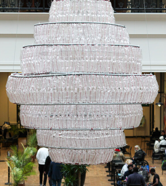 Nghệ sĩ điêu khắc người Mỹ Willie Cole và một số đồng nghiệp mới đây vừa lên tiếng cáo buộc Met Gala 2023 có thể đã ăn cắp ý tưởng chiếc đèn chùm khổng lồ được treo ở trung tâm sự kiện, bởi nó có thiết kế rất giống tác phẩm của các nghệ sĩ này vốn được làm từ những chai nhựa.