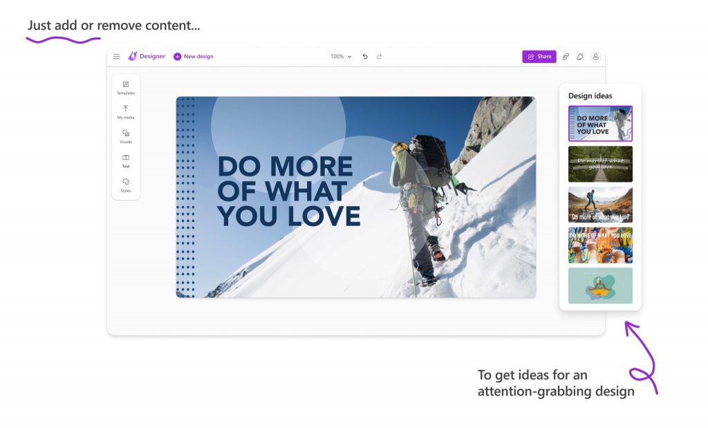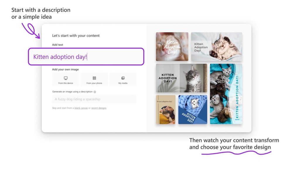 Người dùng cũng có thể cung cấp nội dung bổ sung cho Designer, bao gồm cả hình ảnh và văn bản. Công cụ này sẽ tự động kết hợp chúng vào thiết kế cuối cùng, tạo ra một hình ảnh phù hợp mà không đòi hỏi nhiều công sức.