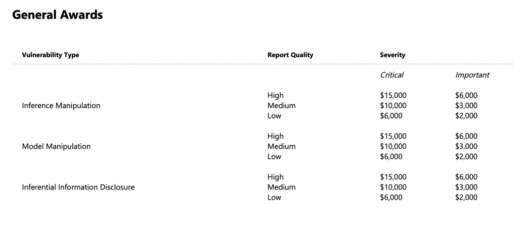 Để đủ điều kiện tham gia chương trình, những người này phải tìm thấy các lỗ hổng “nghiêm trọng hoặc quan trọng” mà Microsoft chưa biết tới hoặc chưa được báo cáo. Chúng bao gồm các kỹ thuật nhằm “tác động và thay đổi hành vi trò chuyện hoặc tiết lộ các hoạt động và lời nhắc nội bộ của Bing”.