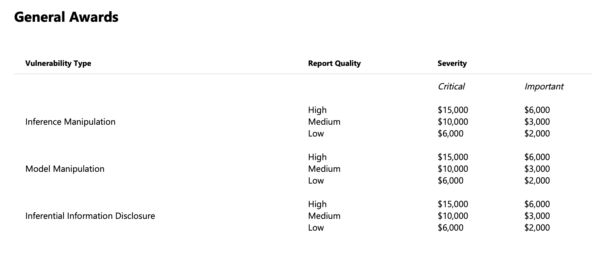 Trong một chương trình treo thưởng mới, gã khổng lồ công nghệ cho biết sẵn sàng tặng từ 2.000 đến 15.000 USD cho bất kỳ ai có thể xác định thành công các lỗ hổng trong trải nghiệm AI của Bing. Số tiền thưởng được quyết định dựa trên mức độ nghiêm trọng của những khám phá này trên trình duyệt Bing, Microsoft Edge, Microsoft Start và ứng dụng di động Skype.