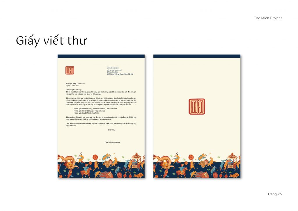 Và cuối cùng là những sản phẩm không thể thiếu trong bộ nhận diện thương hiệu như: hộp bánh, card visit, namecard và postcard, phong bì thư, túi viết thư, kẹp tài liệu A4, túi giấy và poster. Những thiết kế này được đánh giá cao bởi màu sắc hài hòa, họa tiết độc đáo.
