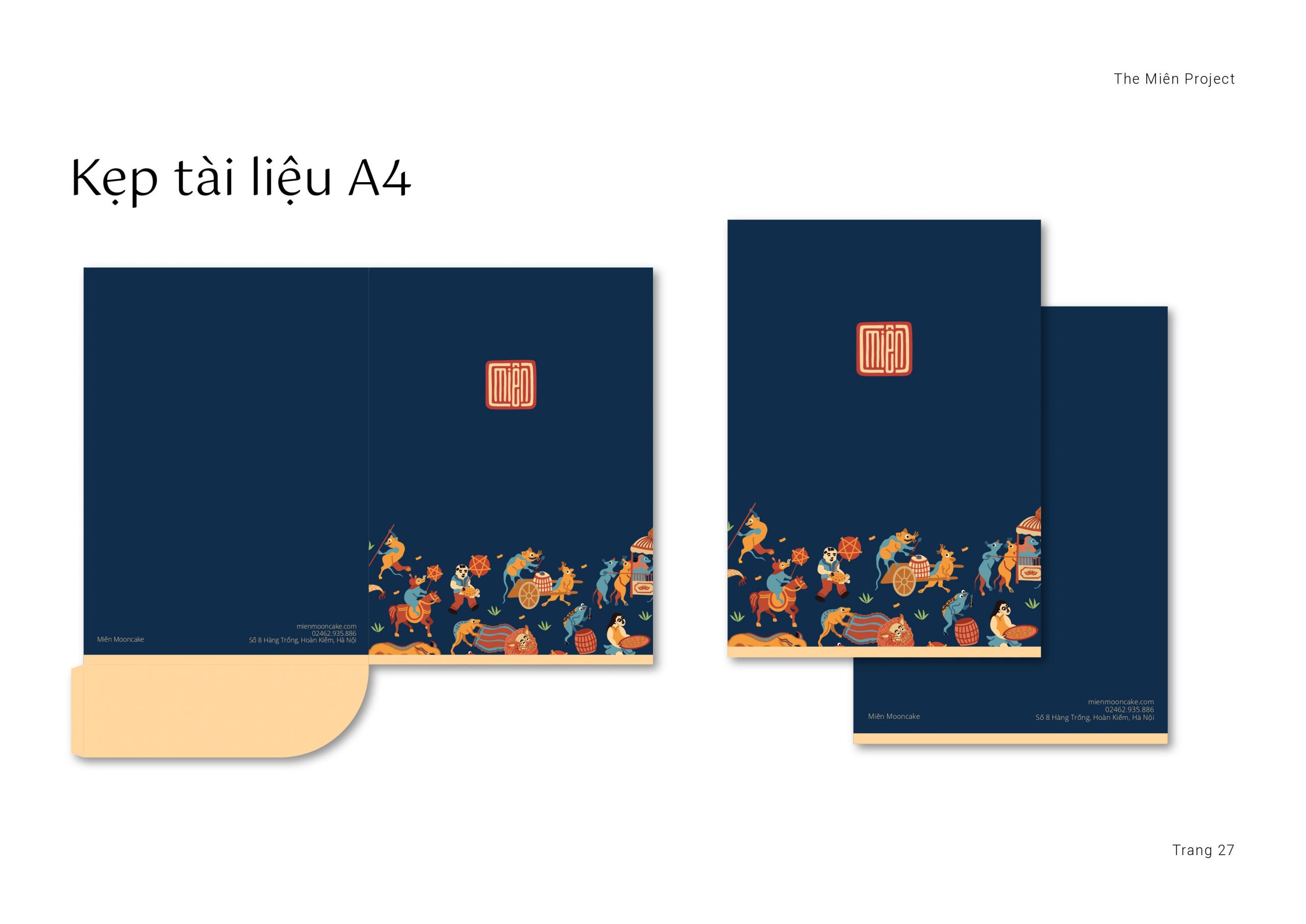 Và cuối cùng là những sản phẩm không thể thiếu trong bộ nhận diện thương hiệu như: hộp bánh, card visit, namecard và postcard, phong bì thư, túi viết thư, kẹp tài liệu A4, túi giấy và poster. Những thiết kế này được đánh giá cao bởi màu sắc hài hòa, họa tiết độc đáo.