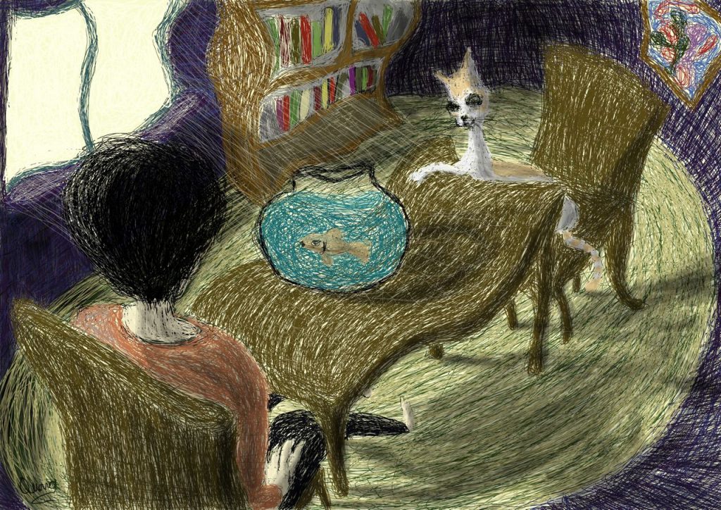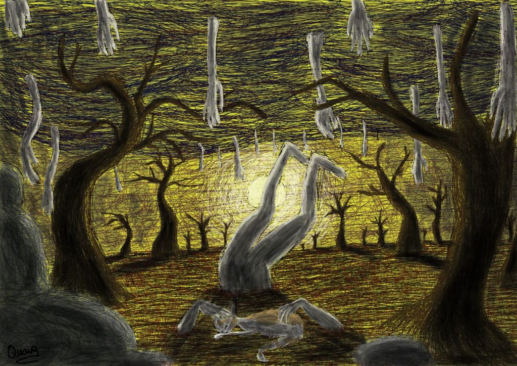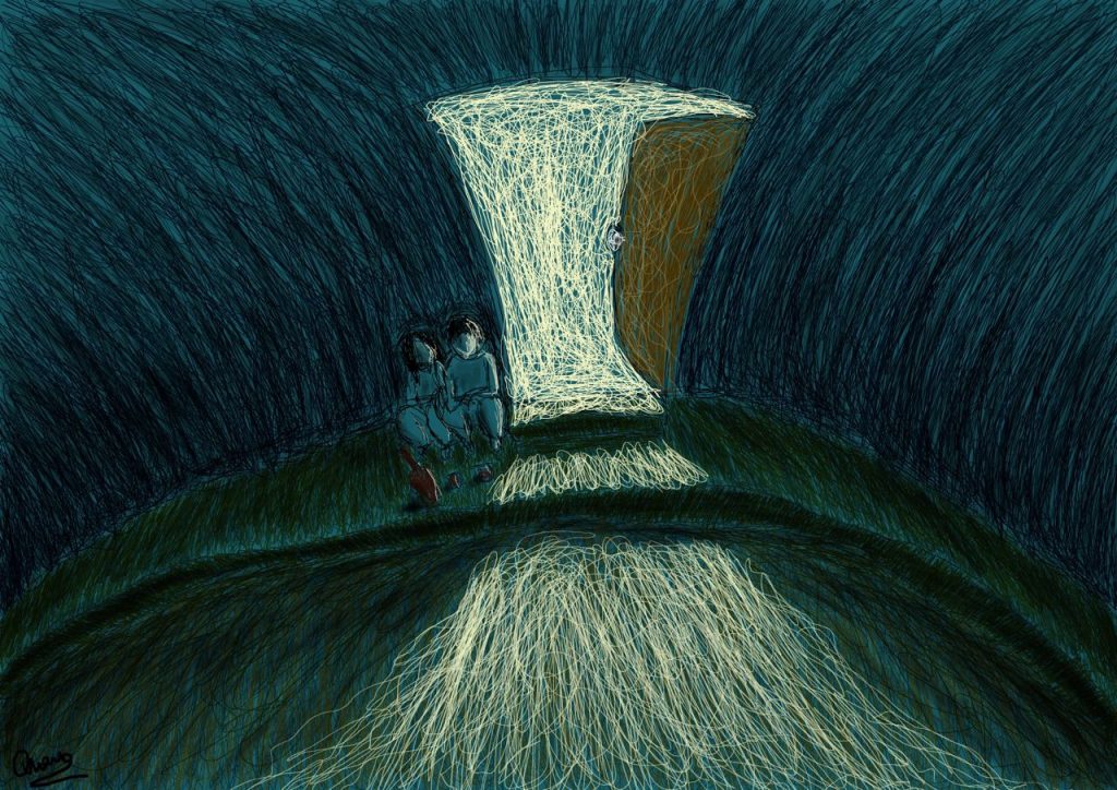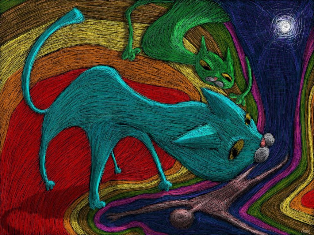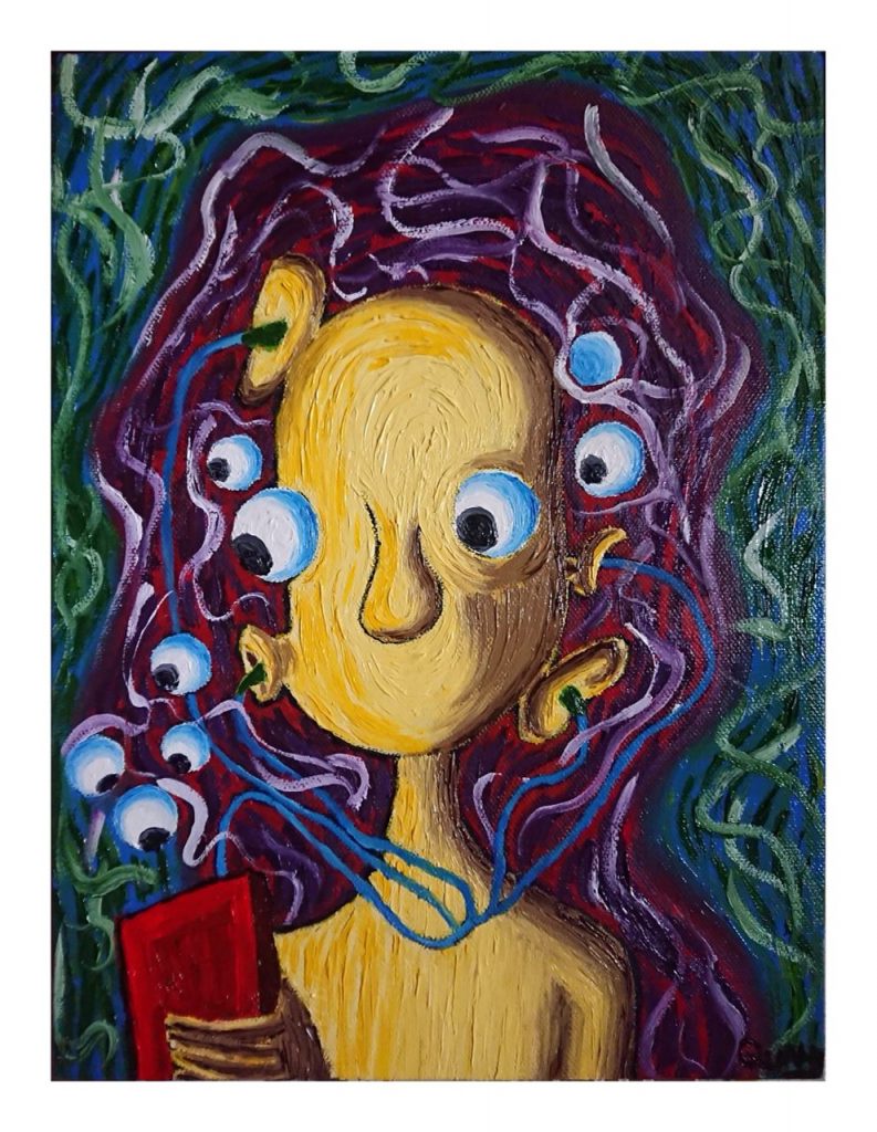 Đã có những giai đoạn anh chia sẻ với tôi cảm xúc cá nhân khá bức bách, không một tên gọi dành cho nó, thế là Quang thể nghiệm bằng những bức vẽ, càng nhiều, có thể kể đến bức ‘Rối’ hay ‘Kiềm’. “Sau khi mình đăng các bức tranh của mình lên những cộng đồng vẽ, nhiều bạn đã nhắn tin cho mình và bảo rằng tranh của mình ‘nói’ lên được những cảm xúc của các bạn