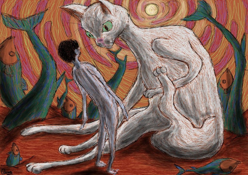 Quang nhận ra môi trường sống và mọi người xung quanh ảnh hưởng rất nhiều đến bản thân. Anh kể lại từng ở Đà Nẵng, chơi thân với hai người bạn và ở chung nhà với một trong hai người bạn đó, cùng một chục con mèo, “đó là giai đoạn mình vẽ rất nhiều mèo cũng như về ba đứa mình hay mấy chuyến trip Sơn Trà..”. Và rất nhiều bức con mèo được sản xuất ra kể từ chuyến đi đó. Hay cả lúc anh thích truyện tranh pokemon, tất cả bức vẽ điều là pokemon.