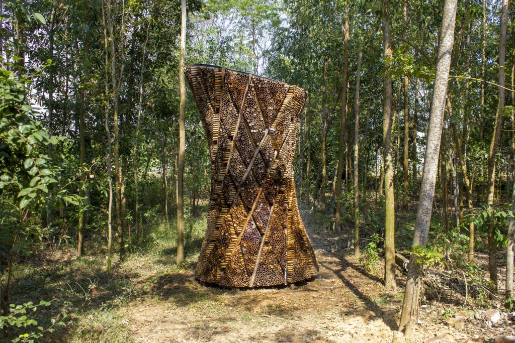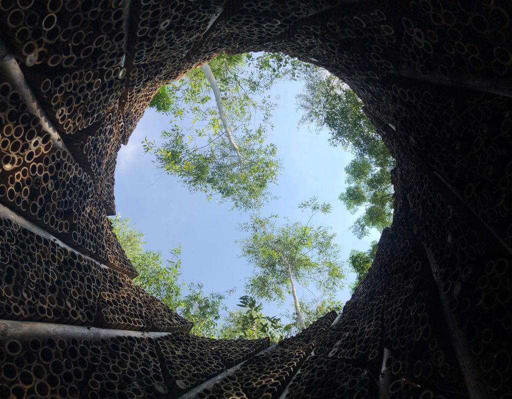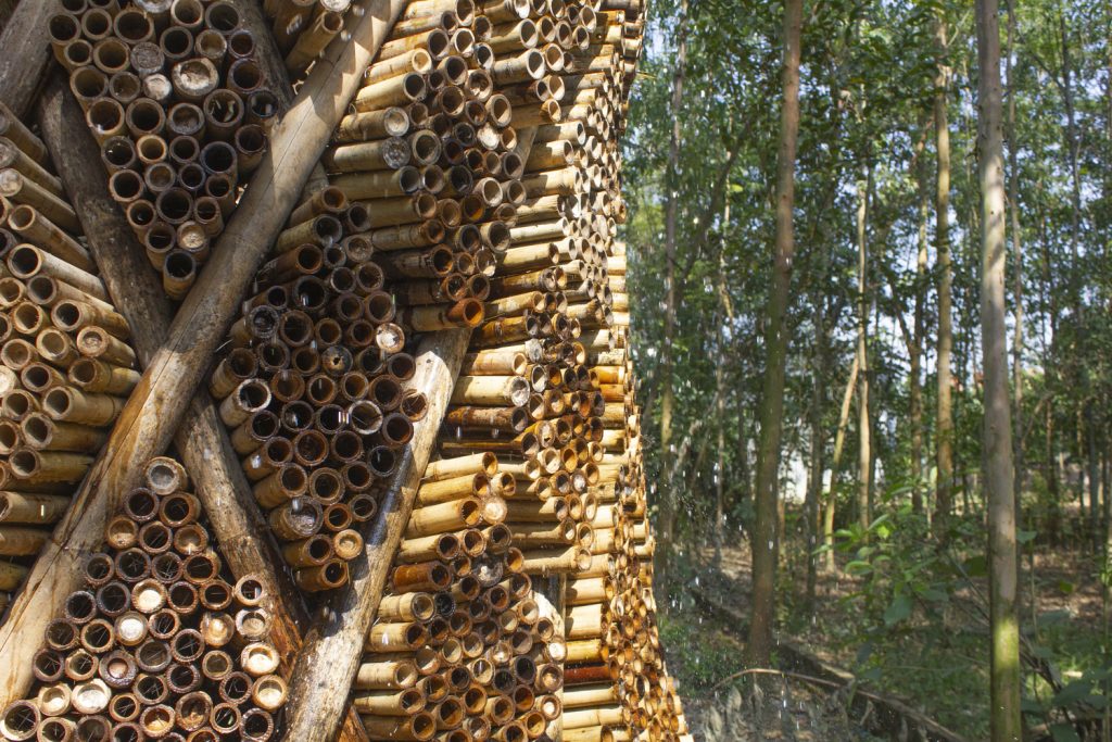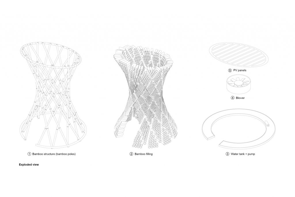Chính điều này đã truyền cảm hứng khiến đội ngũ AREP Vietnam thiết kế nên một thiết bị làm mát công nghệ thấp bằng cách sử dụng nguyên tắc Adiabatic kết hợp với tay nghề của thợ thủ công địa phương, tạo nên một mô hình tre giải nhiệt hiệu quả cho đô thị.