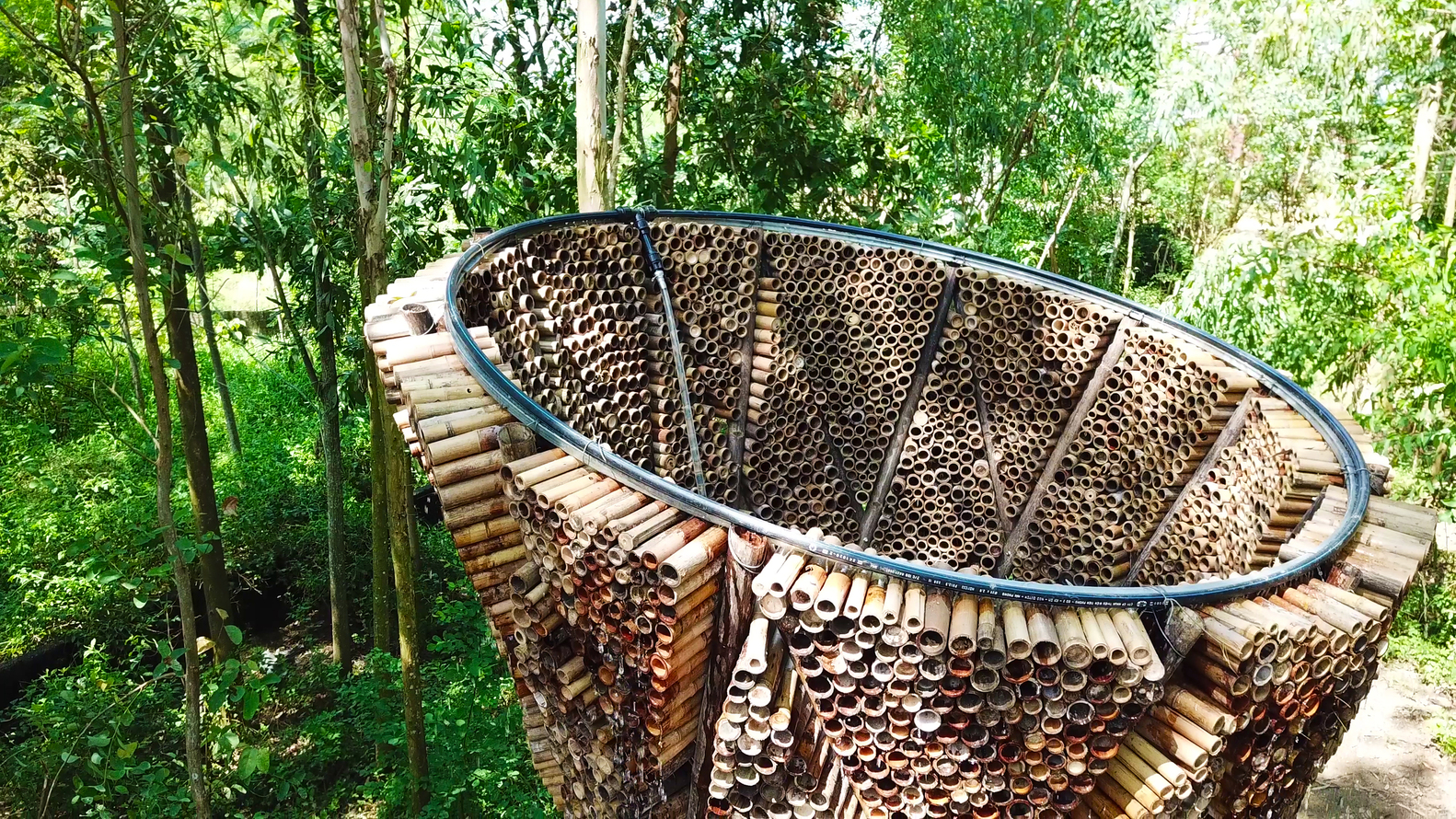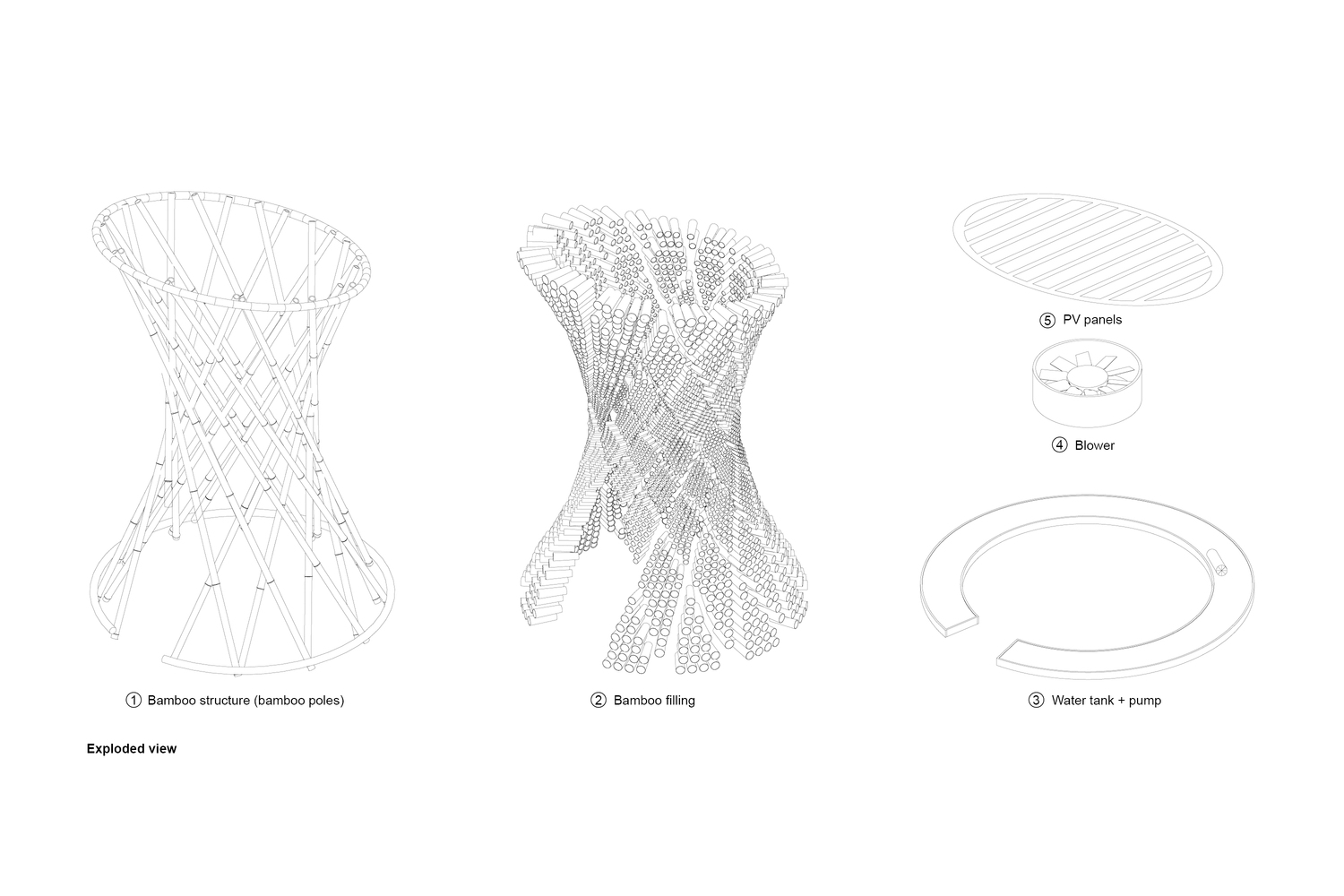 Chính điều này đã truyền cảm hứng khiến đội ngũ AREP Vietnam thiết kế nên một thiết bị làm mát công nghệ thấp bằng cách sử dụng nguyên tắc Adiabatic kết hợp với tay nghề của thợ thủ công địa phương, tạo nên một mô hình tre giải nhiệt hiệu quả cho đô thị.