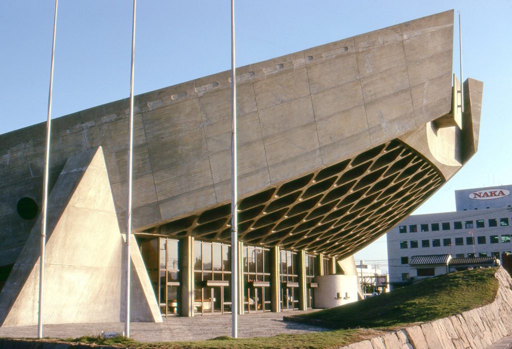 Toà nhà được xây dựng bằng bê tông với cấu trúc hình bầu dục đặc biệt nhô lên ở cả hai bên và được hỗ trợ bởi bốn cây cột khổng lồ. Hình dáng này được lấy cảm hứng từ chiếc thuyền gỗ truyền thống của Nhật Bản.
