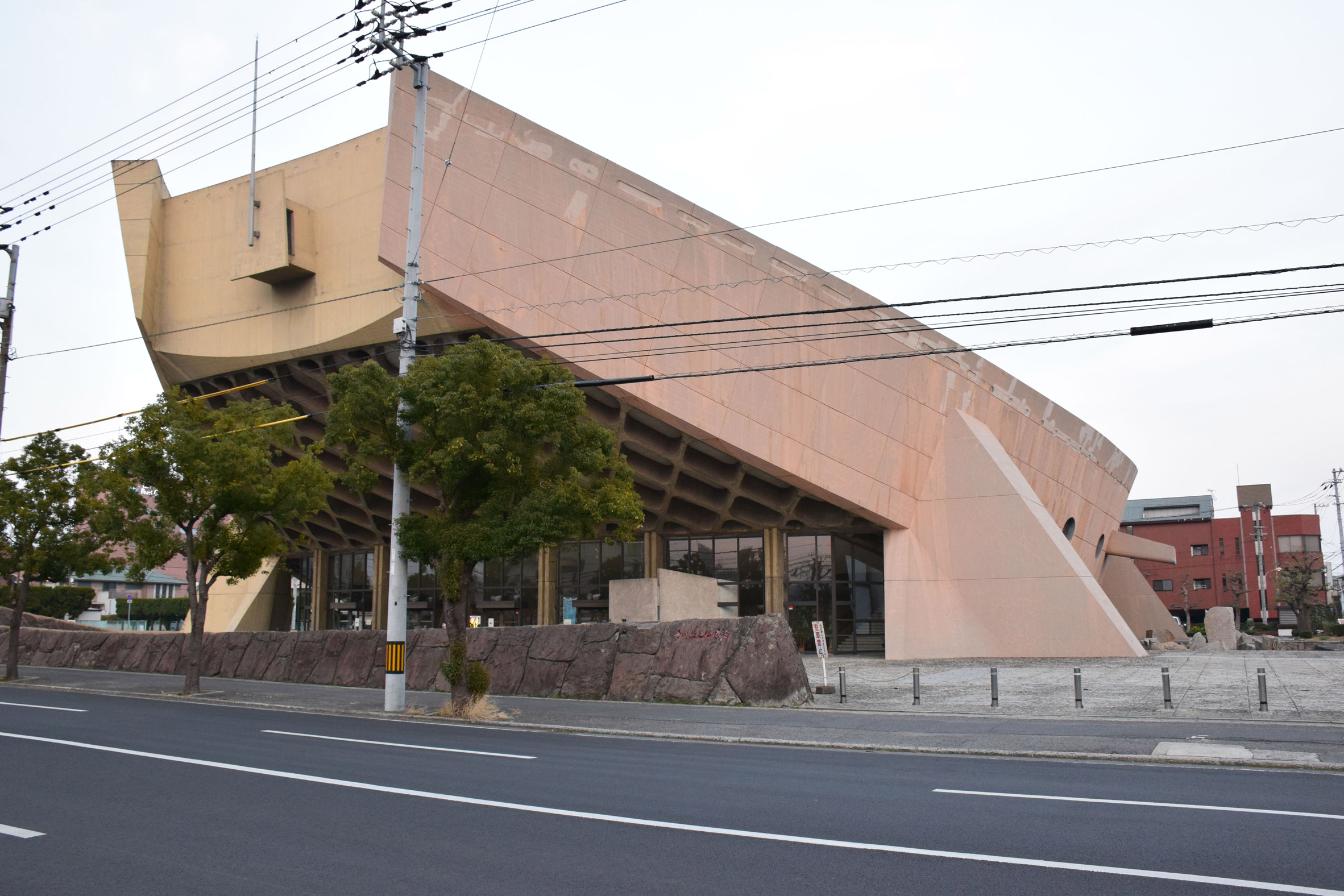 Toà nhà được xây dựng bằng bê tông với cấu trúc hình bầu dục đặc biệt nhô lên ở cả hai bên và được hỗ trợ bởi bốn cây cột khổng lồ. Hình dáng này được lấy cảm hứng từ chiếc thuyền gỗ truyền thống của Nhật Bản.