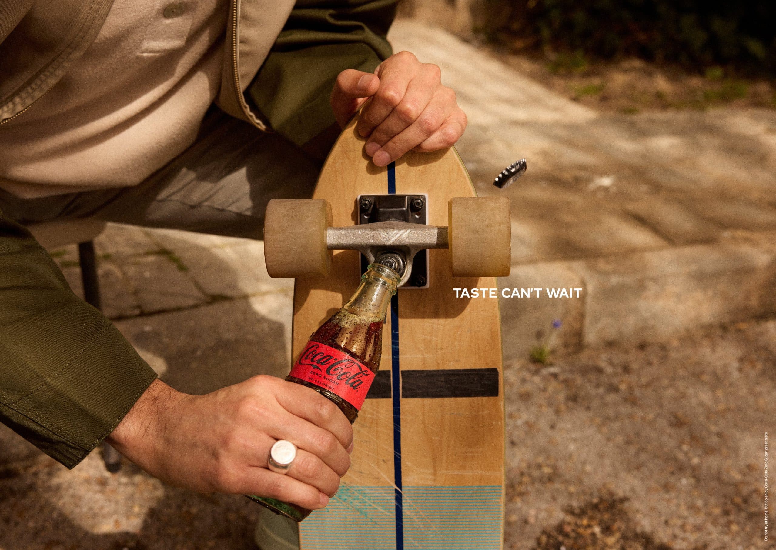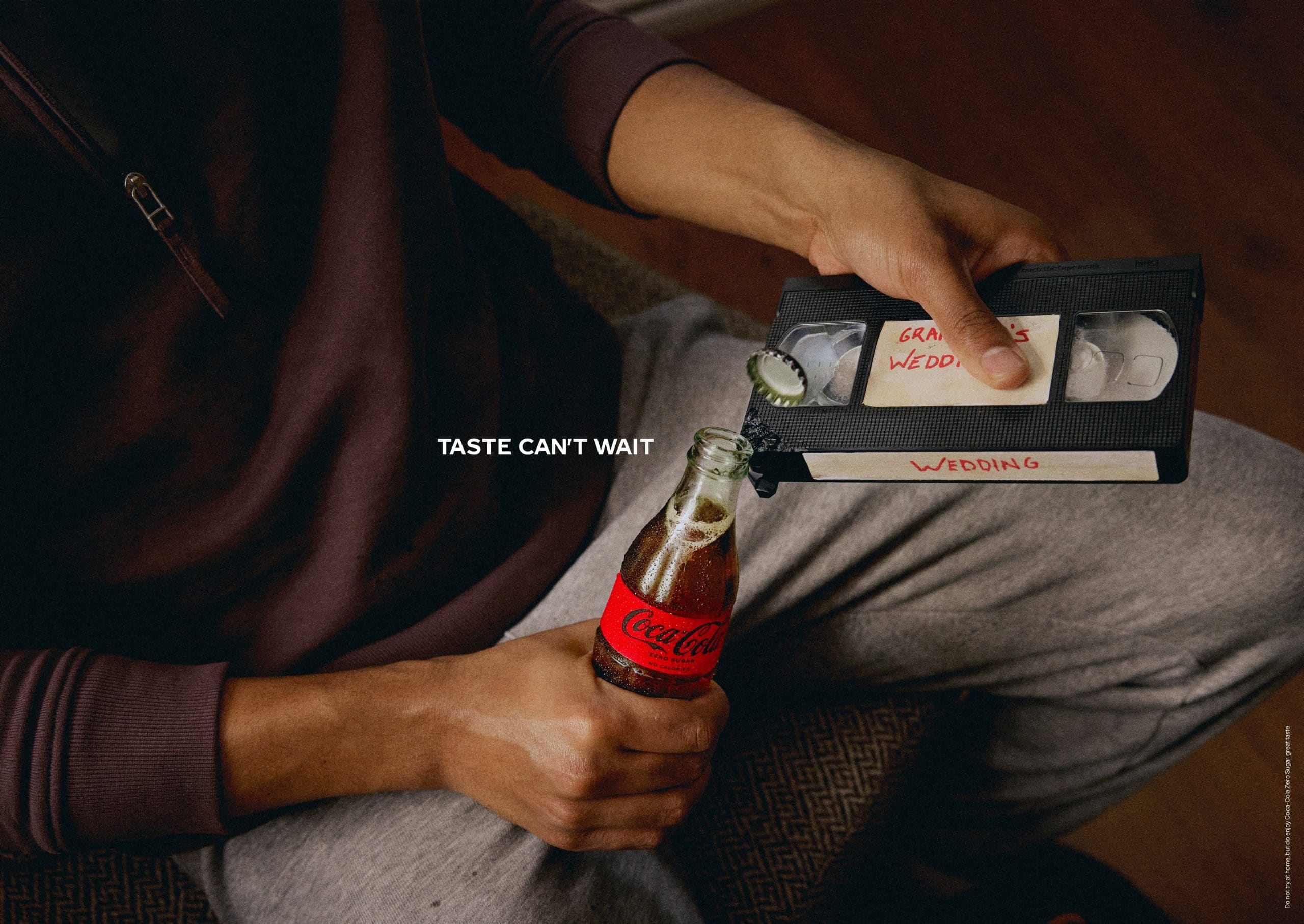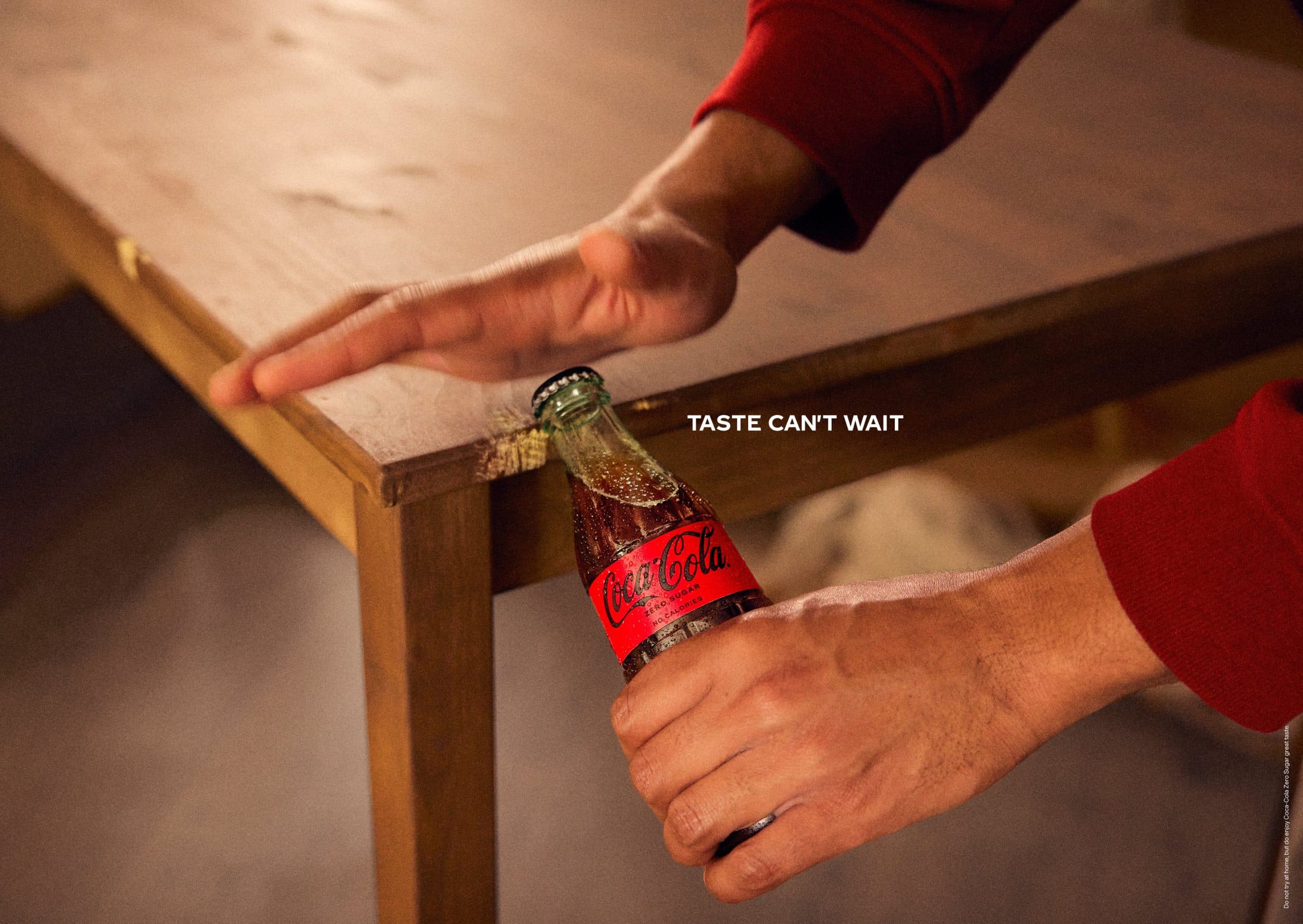 Trong chiến dịch quảng cáo mới nhất của mình có tên ‘Taste Can’t Wait’ (tạm dịch: Hương vị không thể chờ đợi), Coca-Cola đã giải quyết vấn đề này một cách khéo léo. Tiền đề rất rõ ràng: khi nói đến hương vị thơm ngon của Coca-Cola, chờ đợi tìm đồ khui không phải là một lựa chọn khả thi. Thay vì đó, mọi người có thể tìm thấy cho mình một cách thật thú vị để thưởng thức ngay lập tức chai Coca-Cola yêu thích qua loạt Print Ad thú vị: minh hoạ muôn kiểu khui chai bằng các đồ dùng phổ biến trong cuộc sống như điện thoại di động, cạnh bàn, chìa khoá…