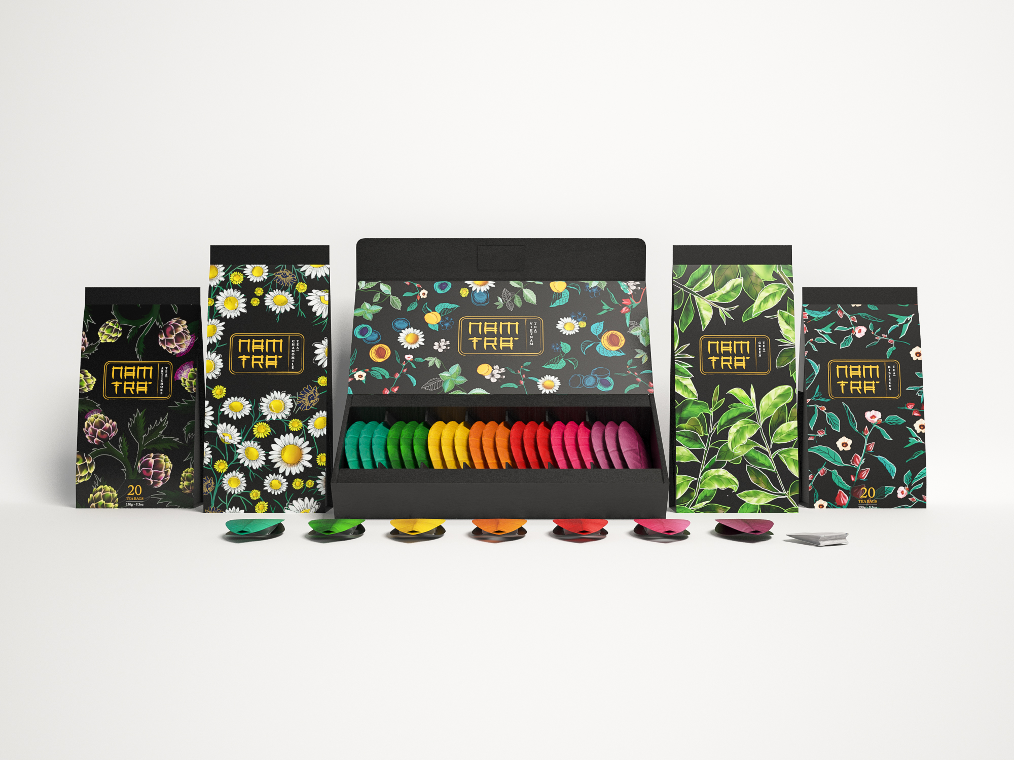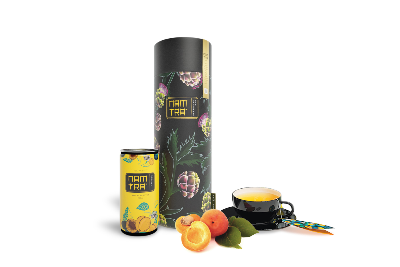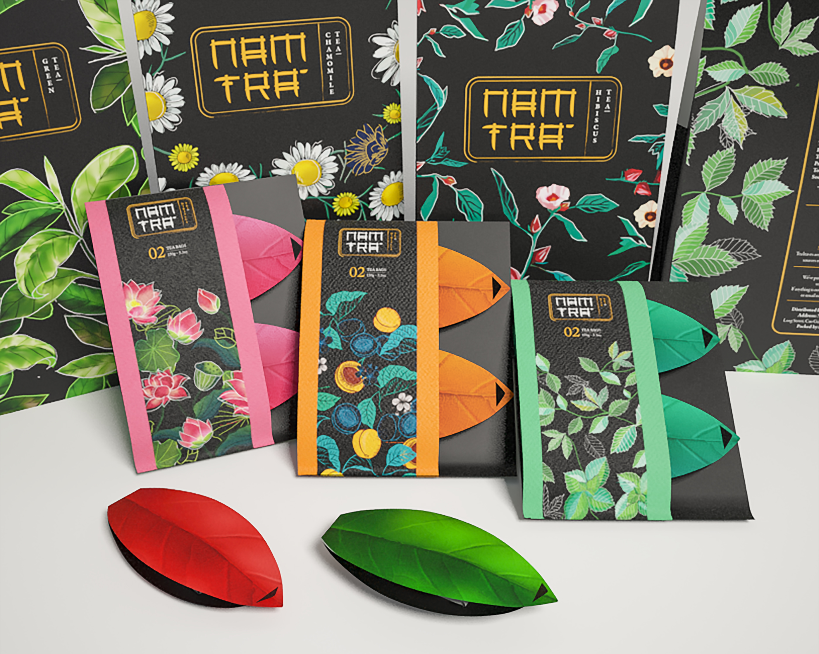 Nam Trà không chỉ là sản phẩm thương mại, đây còn là cách mà người ta gói ghém một món quà và sự trân trọng dành cho người yêu thương. Sự kết hợp của hoạ tiết trái mơ, cánh sen, hoa cúc, bạc hà… cùng phong cách hiện đại, mang tới hình ảnh mới mẻ về một sản phẩm bản địa trên thị trường quốc tế.