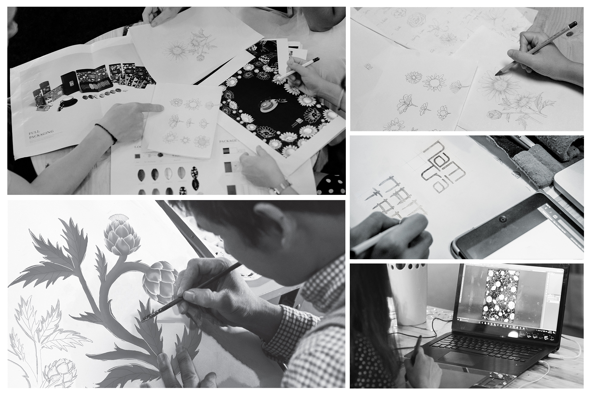 “Tận tay chạm vào những búp non trà xanh còn đọng sương sớm, quan sát cách người nông dân hái từng búp trà từ vùng nguyên liệu, nghe tiếng gió xào xạc và vây quanh mình là hương vị của thiên nhiên; tôi nghĩ rằng sẽ thật tuyệt khi Nam Trà được e ấp trong những búp lá non tươi mới. Và những ý tưởng đầu tiên cho kết cấu, minh hoạ bộ bao bì sản phẩm Nam Trà đã được ra đời như thế.”