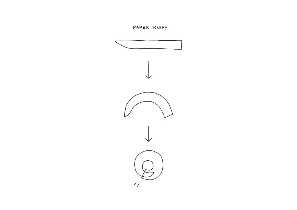 Trên giữa mặt lưng của chiếc dao là một đường hở chỉ đủ chỗ cho một tờ giấy hoặc bì thư được đưa vào. Lưỡi dao nằm ở đầu của “vỏ ốc” và được bao bọc cẩn thận giúp nó tránh khỏi những bàn tay vụng về.