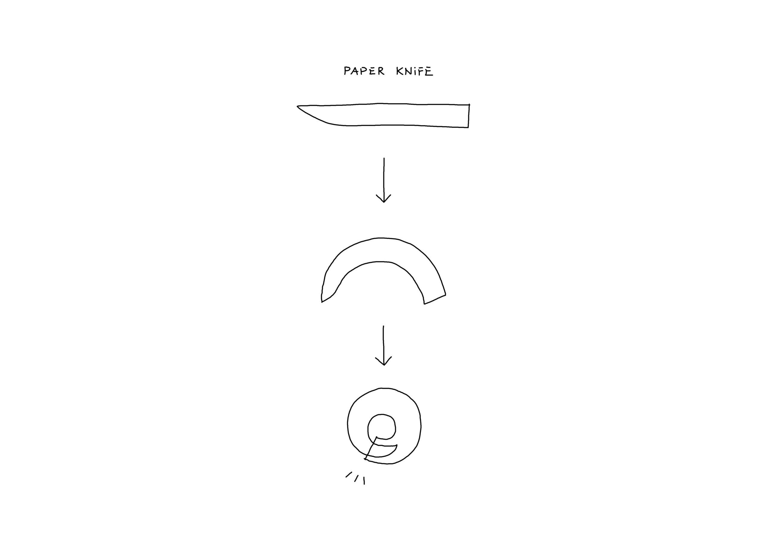 Trên giữa mặt lưng của chiếc dao là một đường hở chỉ đủ chỗ cho một tờ giấy hoặc bì thư được đưa vào. Lưỡi dao nằm ở đầu của “vỏ ốc” và được bao bọc cẩn thận giúp nó tránh khỏi những bàn tay vụng về.