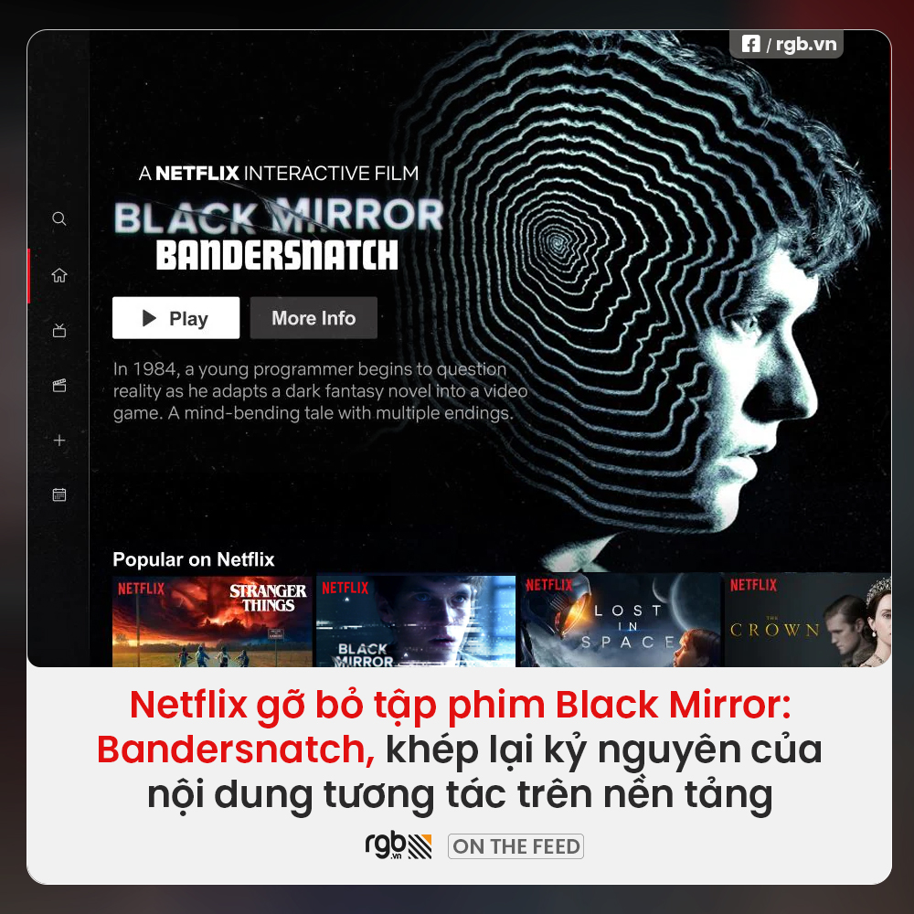 Netflix sẽ chính thức gỡ bỏ Black Mirror: Bandersnatch vào ngày 12/5/2025, khép lại một chương từng đầy hứa hẹn trong hành trình kể chuyện tương tác.