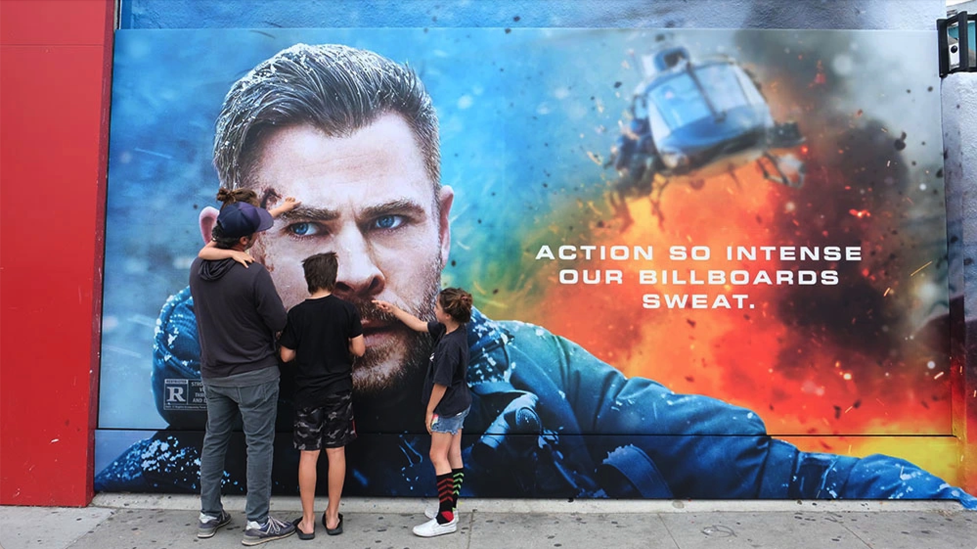 Để quảng bá cho bộ phim hành động đầy kịch tích mới ra mắt Extraction 2 với sự tham gia của Chris Hemsworth, Netflix đã cho lắp đặt những billboards với hiệu ứng “toát mồ hôi” trên gương mặt của nam tài tử nhằm truyền tải thông điệp: bộ phim có đầy những pha hành động căng thẳng đến mức các biển quảng cáo của chúng tôi cũng phải toát mồ hôi.