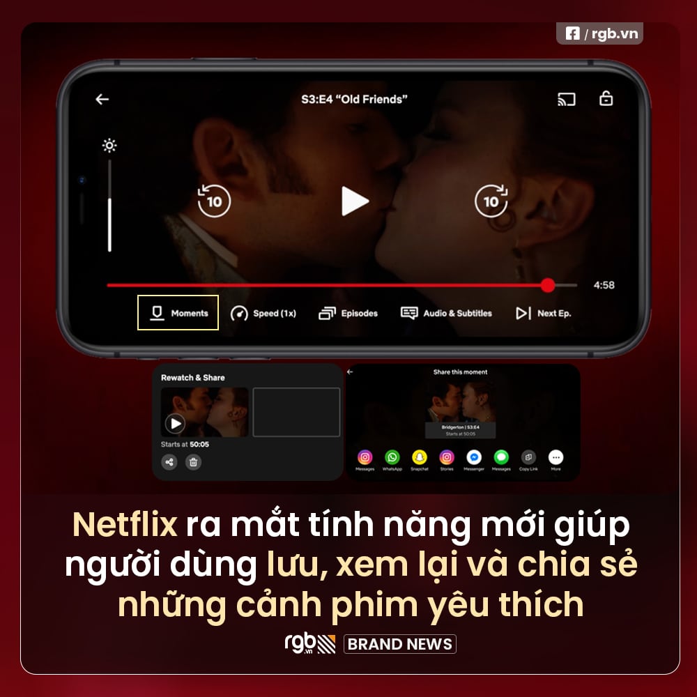 Netflix vừa công bố tính năng “Moments” trên ứng dụng di động, cho phép người dùng dễ dàng cắt ngắn những cảnh phim yêu thích và chia sẻ với bạn bè hay cộng đồng hâm mộ trên mạng xã hội.