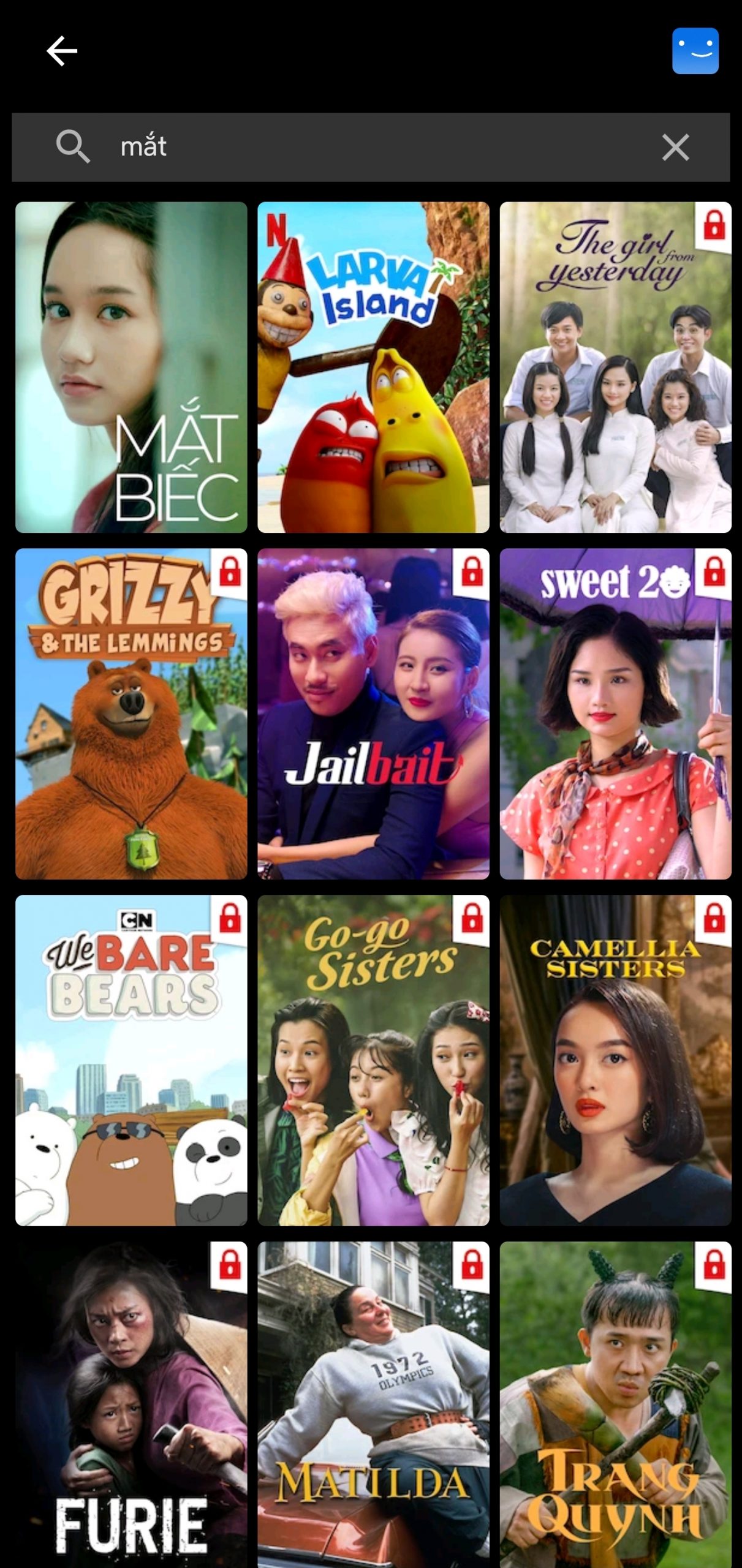 Tuy nhiên, số lượng phim khác bị giới hạn. Như ở mục Việt Nam, phim duy nhất có thể xem là Mắt biếc, các phim còn lại đều bị khóa.