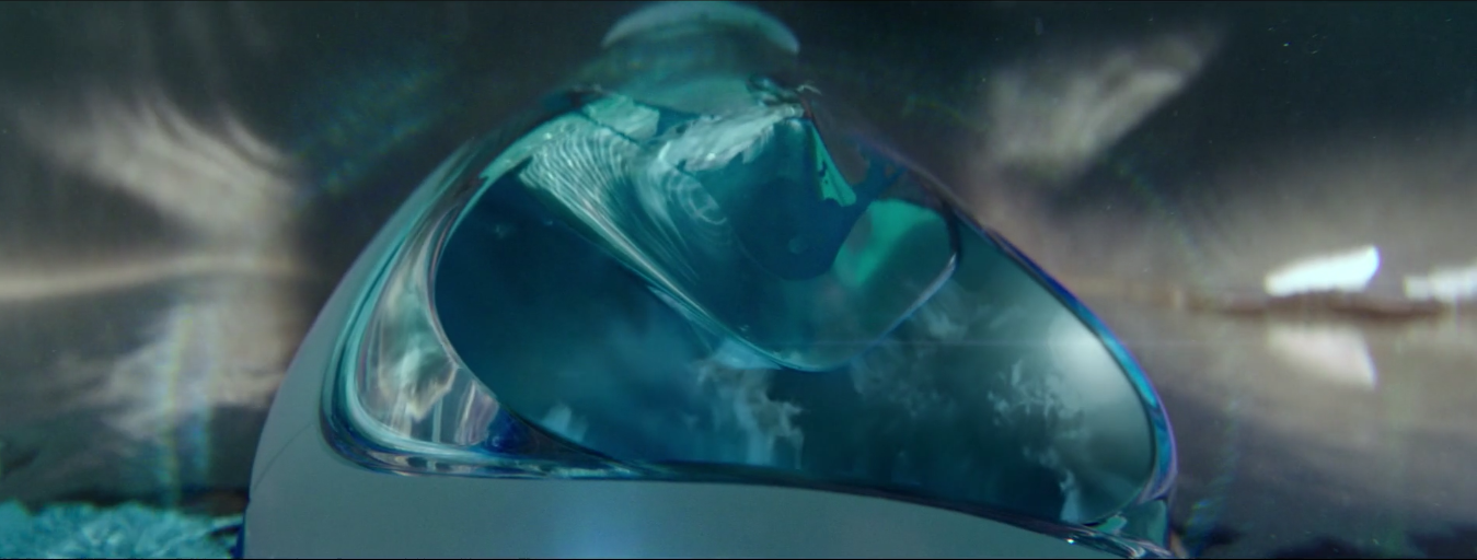 Sau đó nán lại trên chiếc mặt nạ. Thiết kế trong suốt và tao nhã là một điểm nhấn gọn ghẽ thông qua cách mà nó phản chiếu mọi vật xung quanh: Bầu trời kỳ dị và bầy cá ùa lên qua mặt kính. Một con cá đuối bơi qua, đủ gần để chạm, và người thợ lặn chậm rãi đưa tay ra.