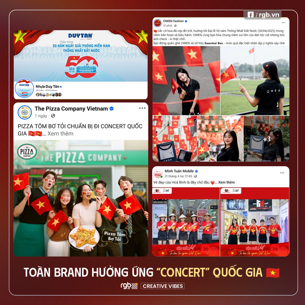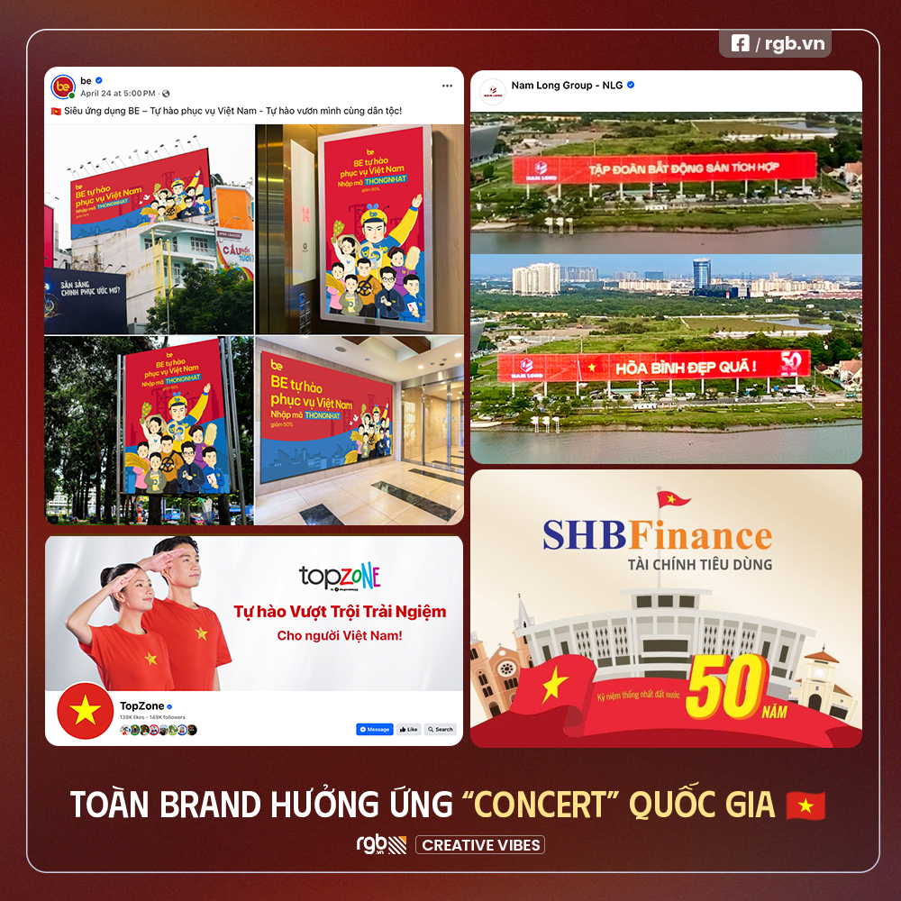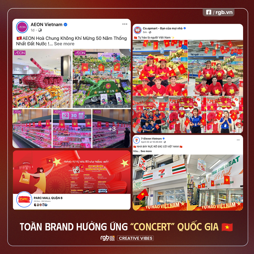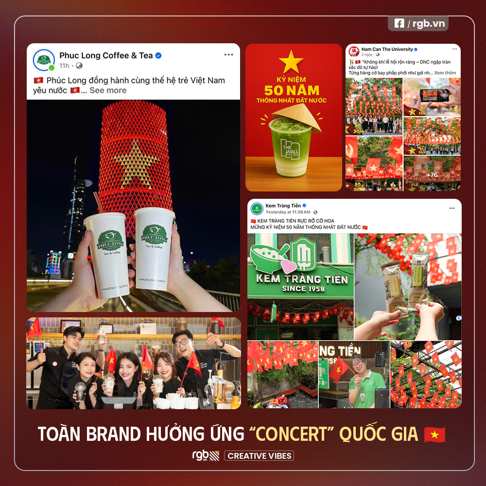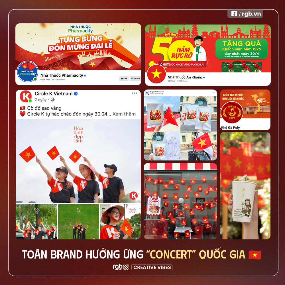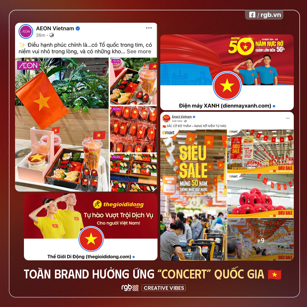 Hoà cùng không khí tự hào hướng đến đại lễ 30/4 – kỷ niệm 50 năm Ngày Thống Nhất Đất Nước, các thương hiệu lớn nhỏ trên khắp Việt Nam đã đồng loạt “ra quân” hưởng ứng “Concert” Quốc Gia theo cách vô cùng sôi động và rực rỡ.