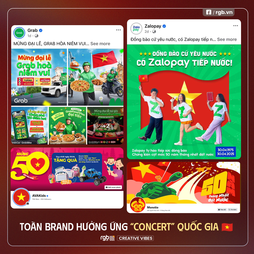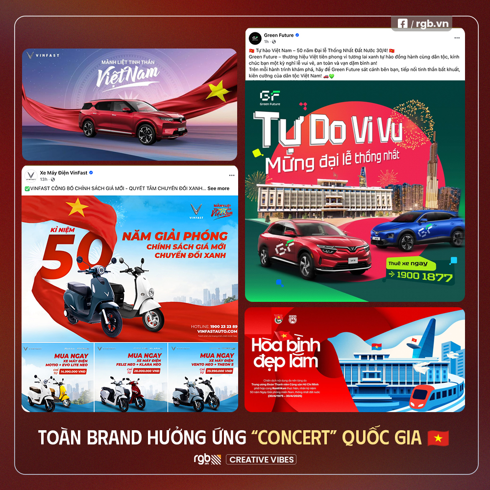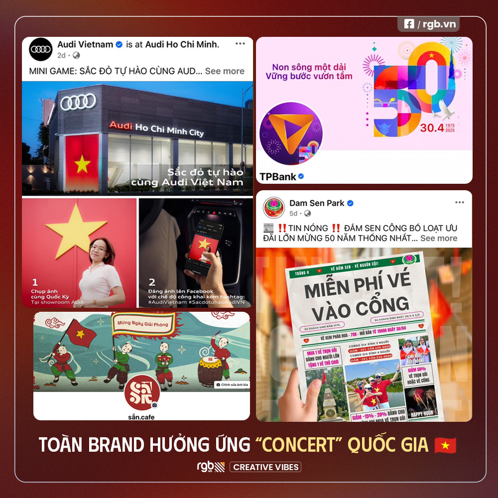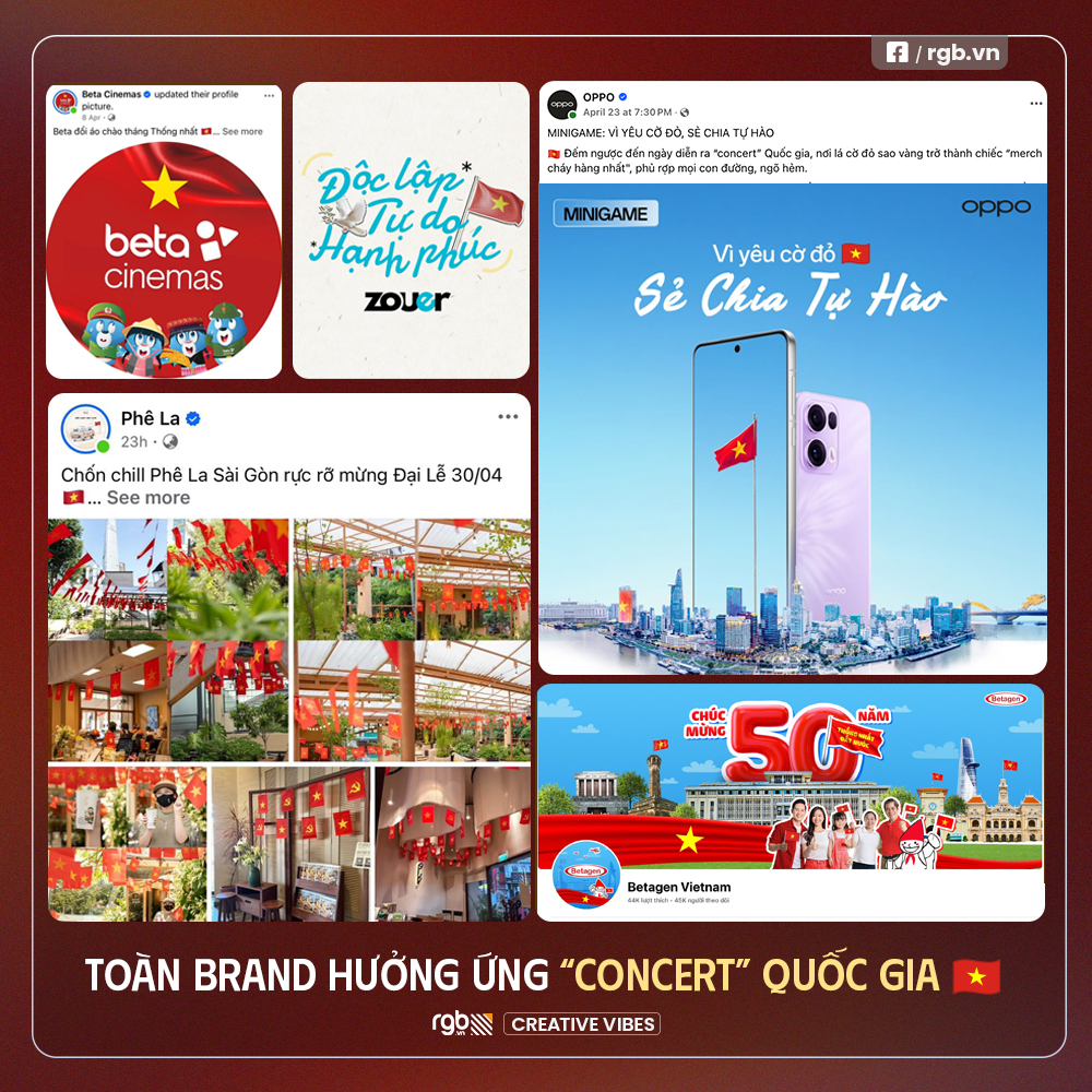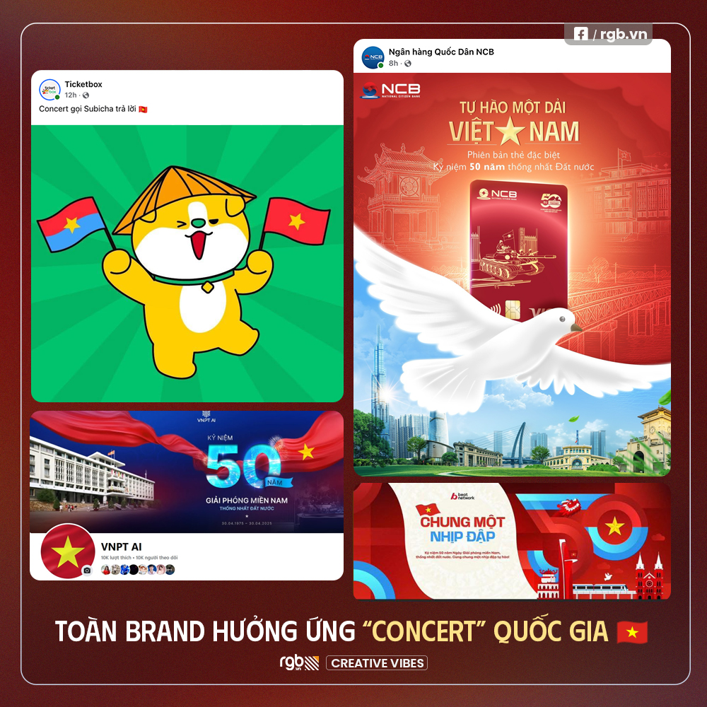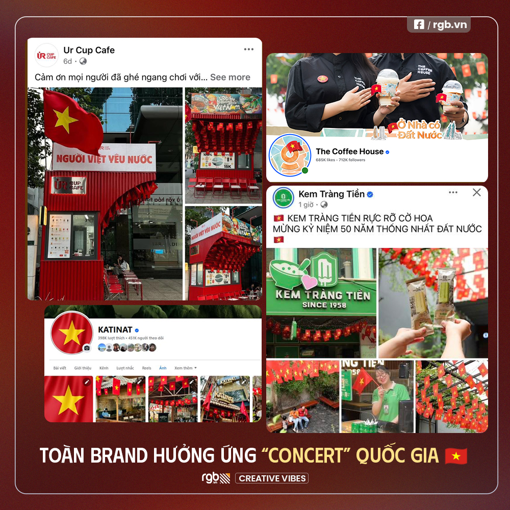 Hoà cùng không khí tự hào hướng đến đại lễ 30/4 – kỷ niệm 50 năm Ngày Thống Nhất Đất Nước, các thương hiệu lớn nhỏ trên khắp Việt Nam đã đồng loạt “ra quân” hưởng ứng “Concert” Quốc Gia theo cách vô cùng sôi động và rực rỡ.