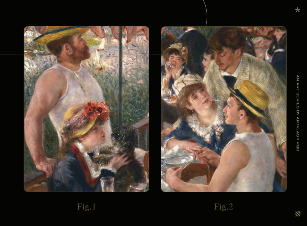 Người đàn ông này chính là Baron Raoul Barbier, người tổ chức bữa tiệc trưa trên thuyền này mà nhờ đó Renoir mới có cơ hội để vẽ lại khung cảnh trên. Tại đây, Renoir giữ nguyên những cách sắp xếp khung cảnh. Ông thể hiện sự biết ơn thông qua các hính dáng. Và tôi tin rằng Renoir cũng muốn nhắc đến tầm quan trọng của việc tôn vinh điều mà ta không biết, “thế giới như một người thứ ba”, vừa bí ấn nhưng cũng rất thân thiện.