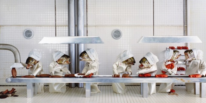 Nghệ sĩ đương đại Anne-Catherine Becker-Echivard người Pháp đã thực hiện một dự án khiến không ít người tò mò. Dự án có tên là Les Temps Modernes (tạm dịch: Thời hiện đại). Cô đã sử dụng những chiếc đầu cá để miêu tả lại cuộc sống thường ngày của con người, phản ánh những vấn đề chính trị, xã hội với một cái nhìn hài hước và hết sức thú vị.